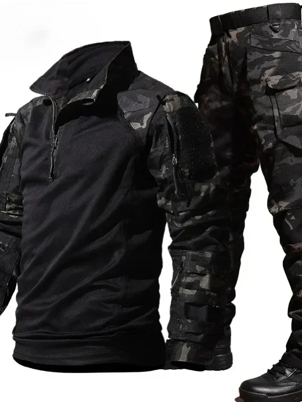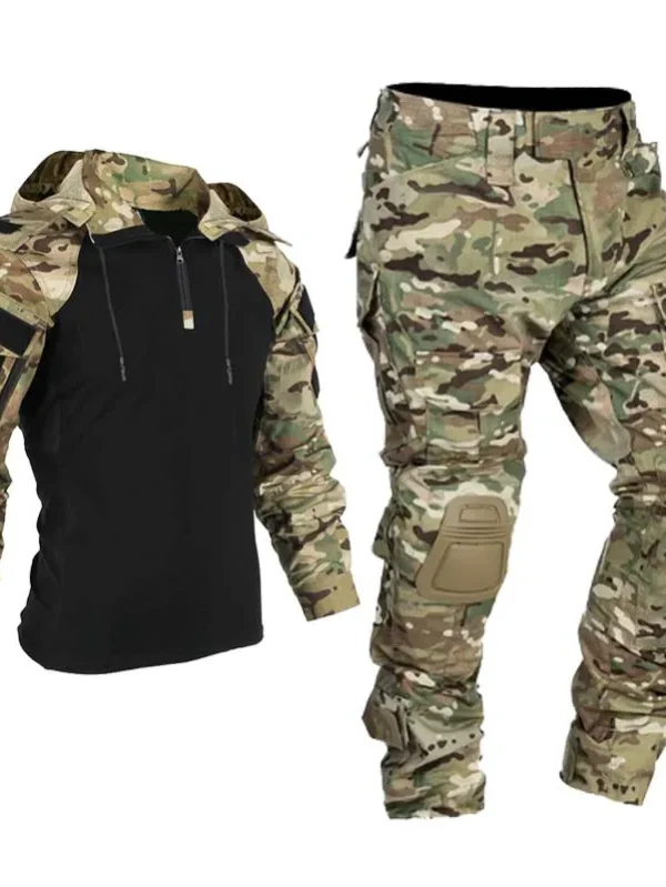 Camo Training Sets Mens 1/4 Zipper Combat Tops Tactical Suits Training Durable Shirts MCBK Multiple Pockets Wear-resisting