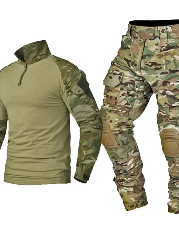 Outdoor Suit Men Outdoor Durable Breathable T-shirt Pants Mens Army Sets Training Hunting Suits Multiple Pockets Camo 2 Pcs
