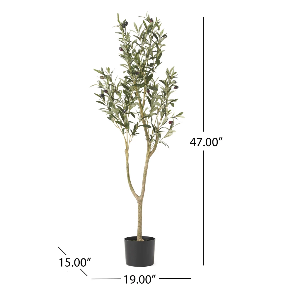 • OLIVE TREE: Featuring silvery-green oblong leaves, slim branches, and dark purple olives, our artificial plant captures the look and feel of a lovely olive tree. This evergreen tree is said to symbolize peace and friendship.