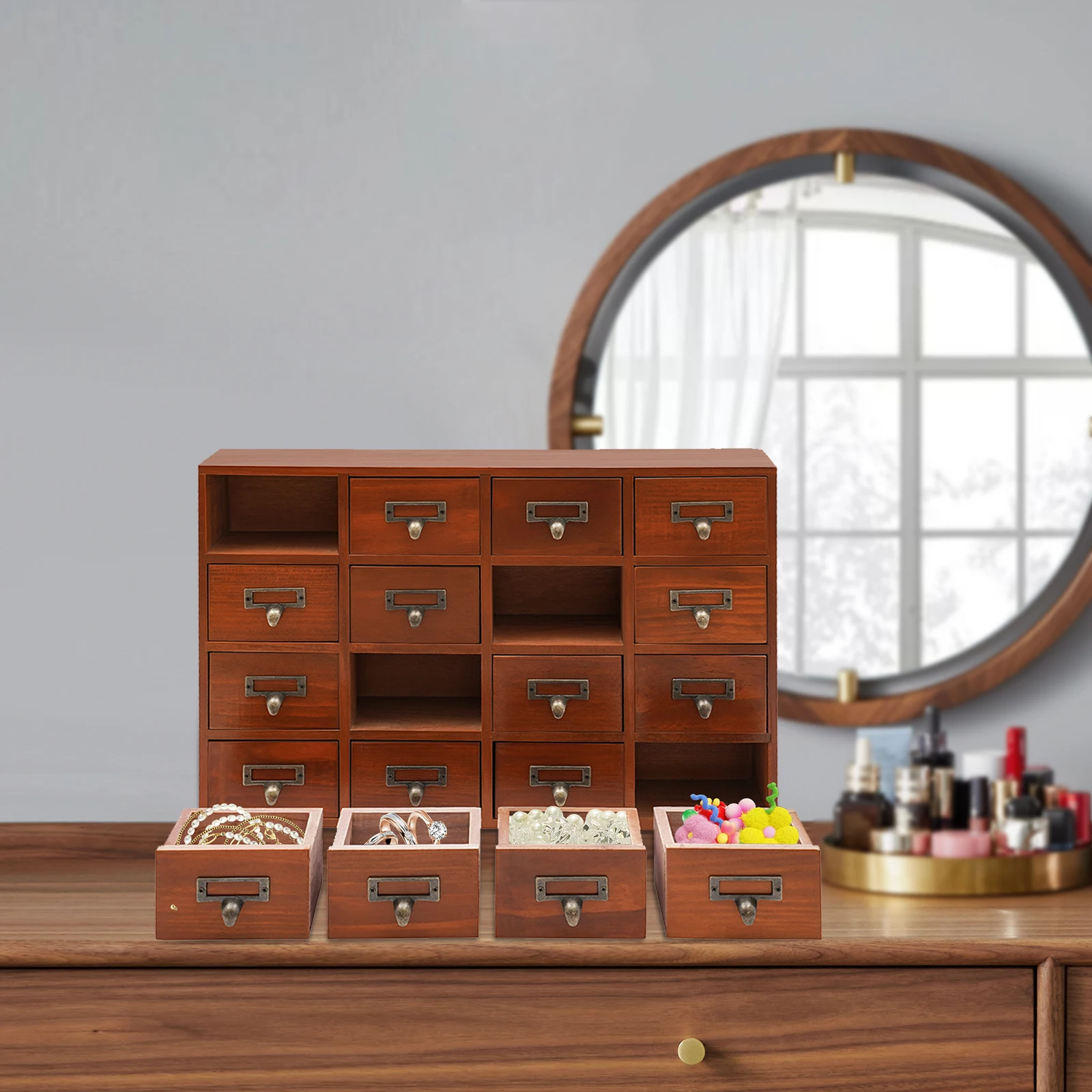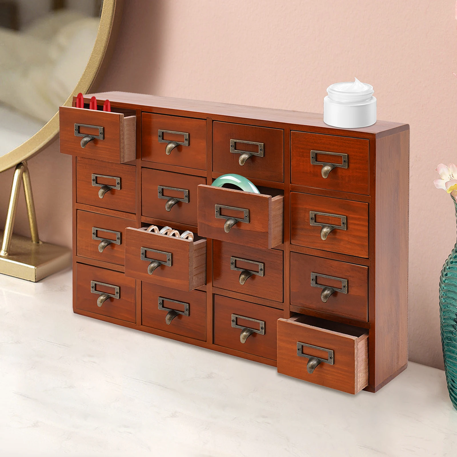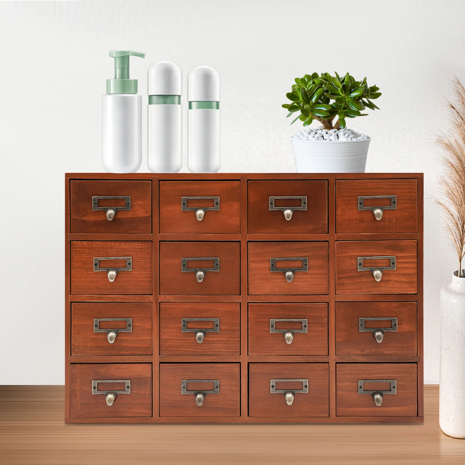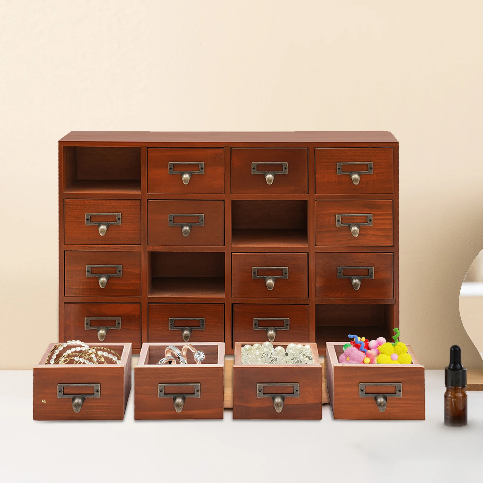 16 Drawers Wooden Organizer Cabinet Pine Wood Jewelry Storage Box with Label Holders for Beads Crafts Cosmetics Office Home