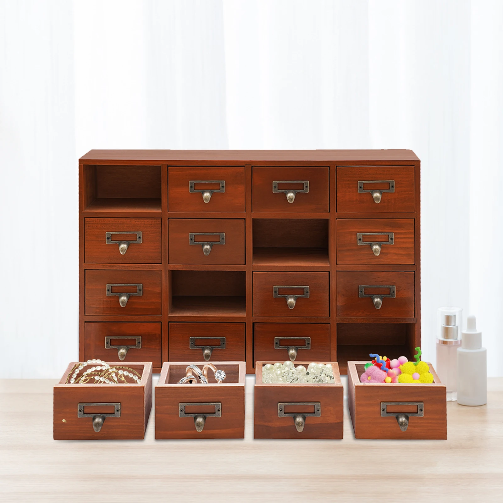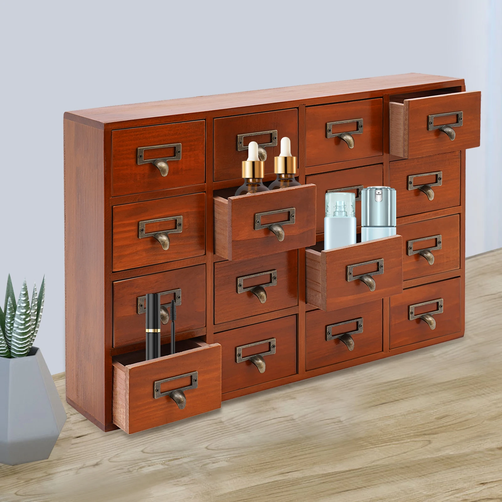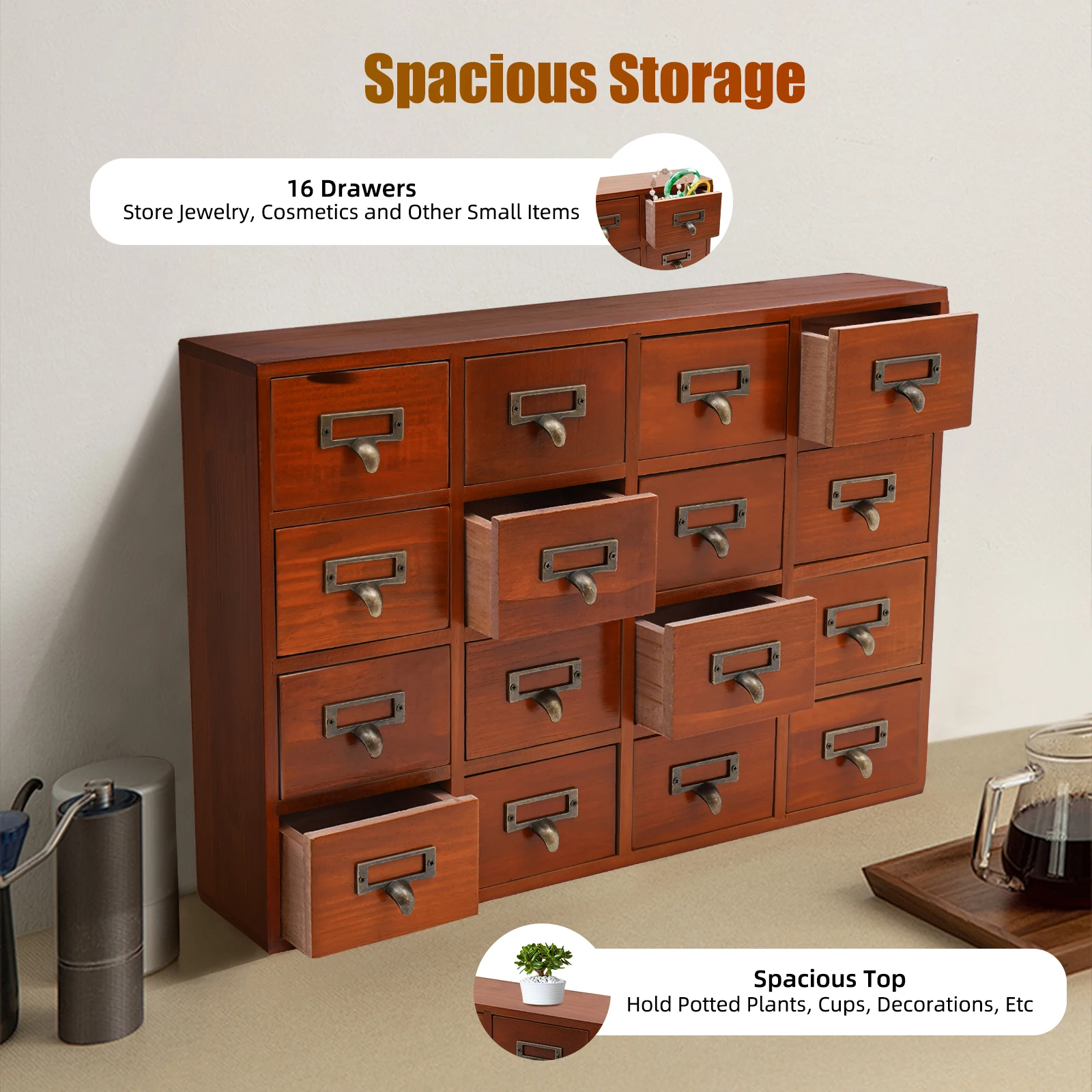 16 Drawers Wooden Organizer Cabinet Pine Wood Jewelry Storage Box with Label Holders for Beads Crafts Cosmetics Office Home