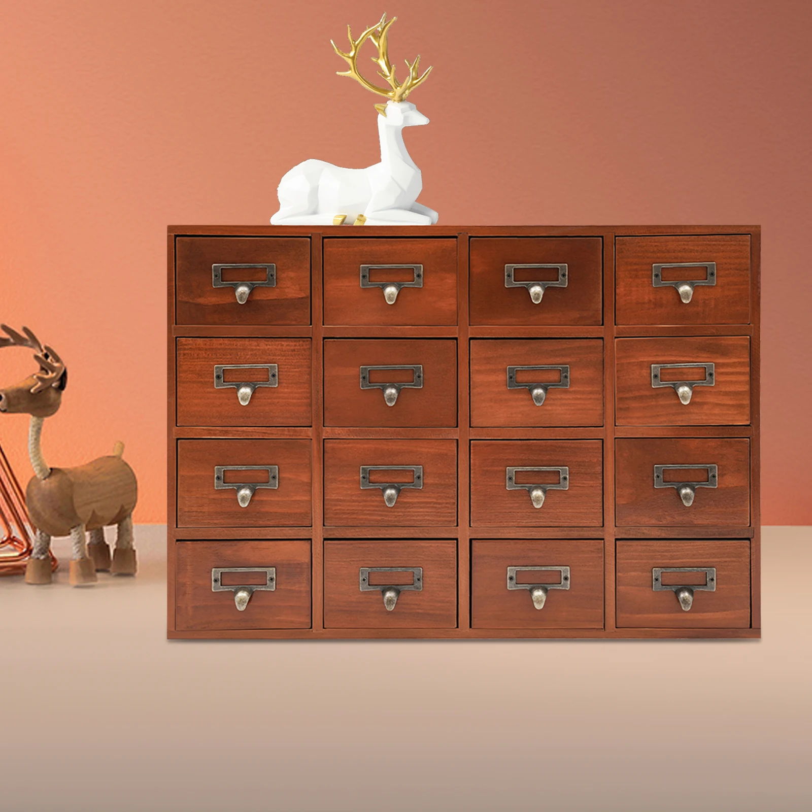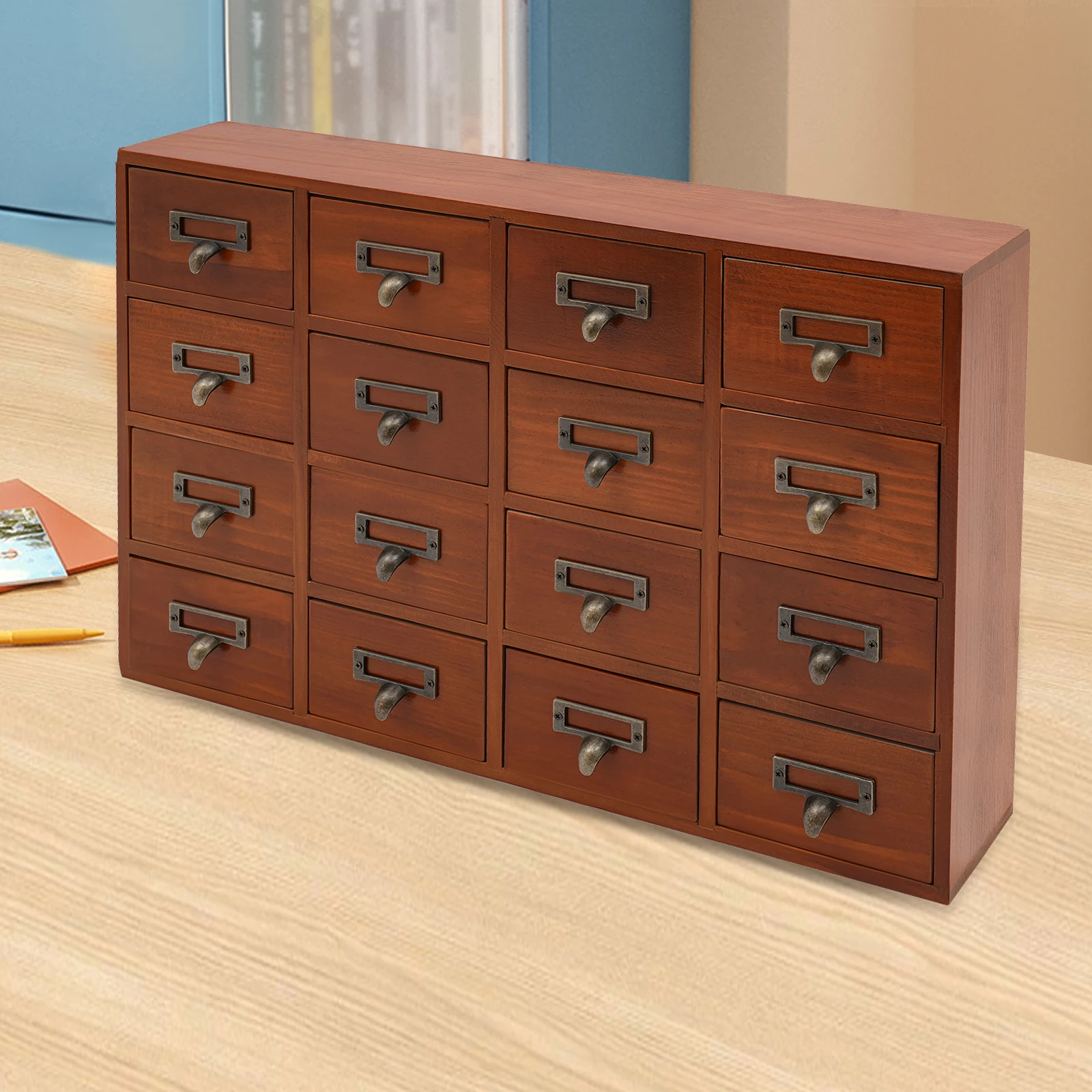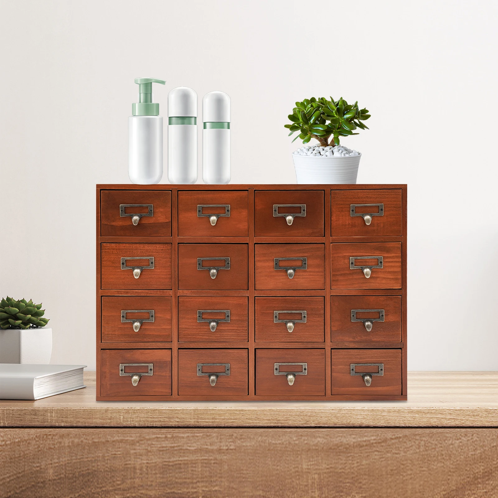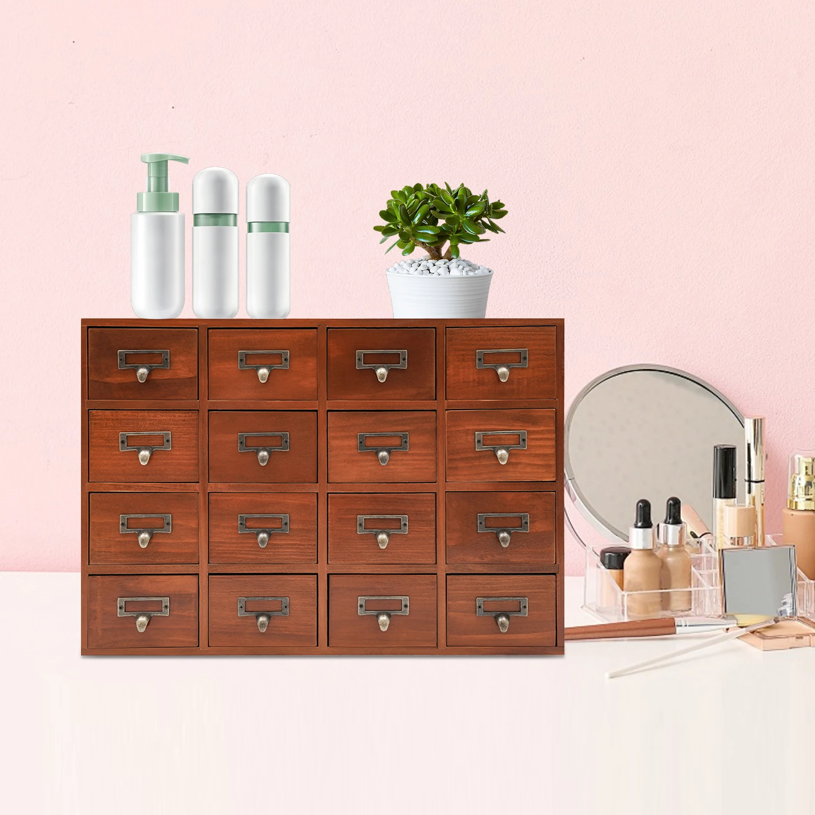 16 Drawers Wooden Organizer Cabinet Pine Wood Jewelry Storage Box with Label Holders for Beads Crafts Cosmetics Office Home