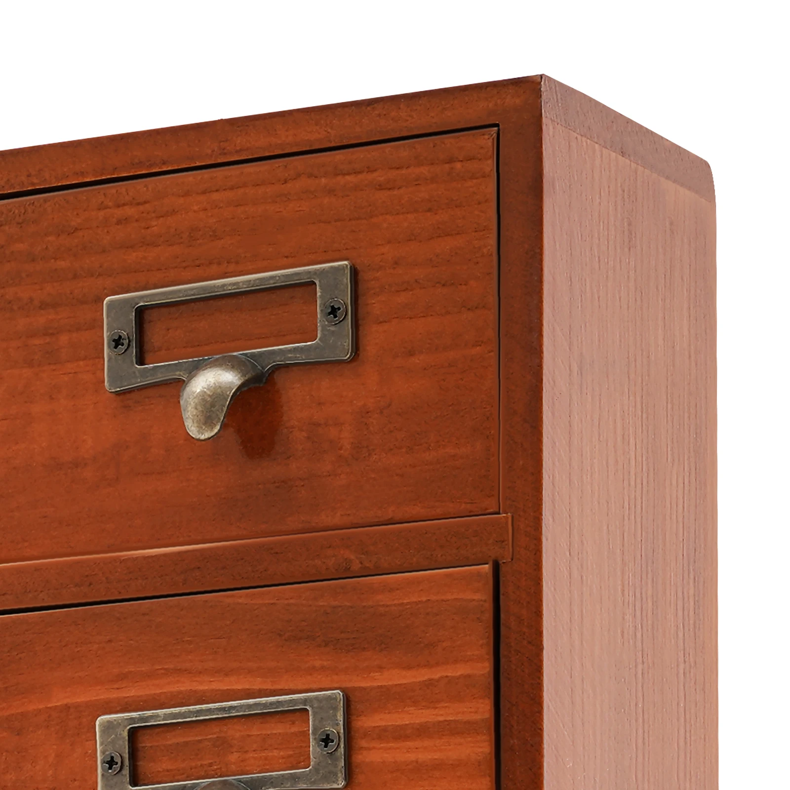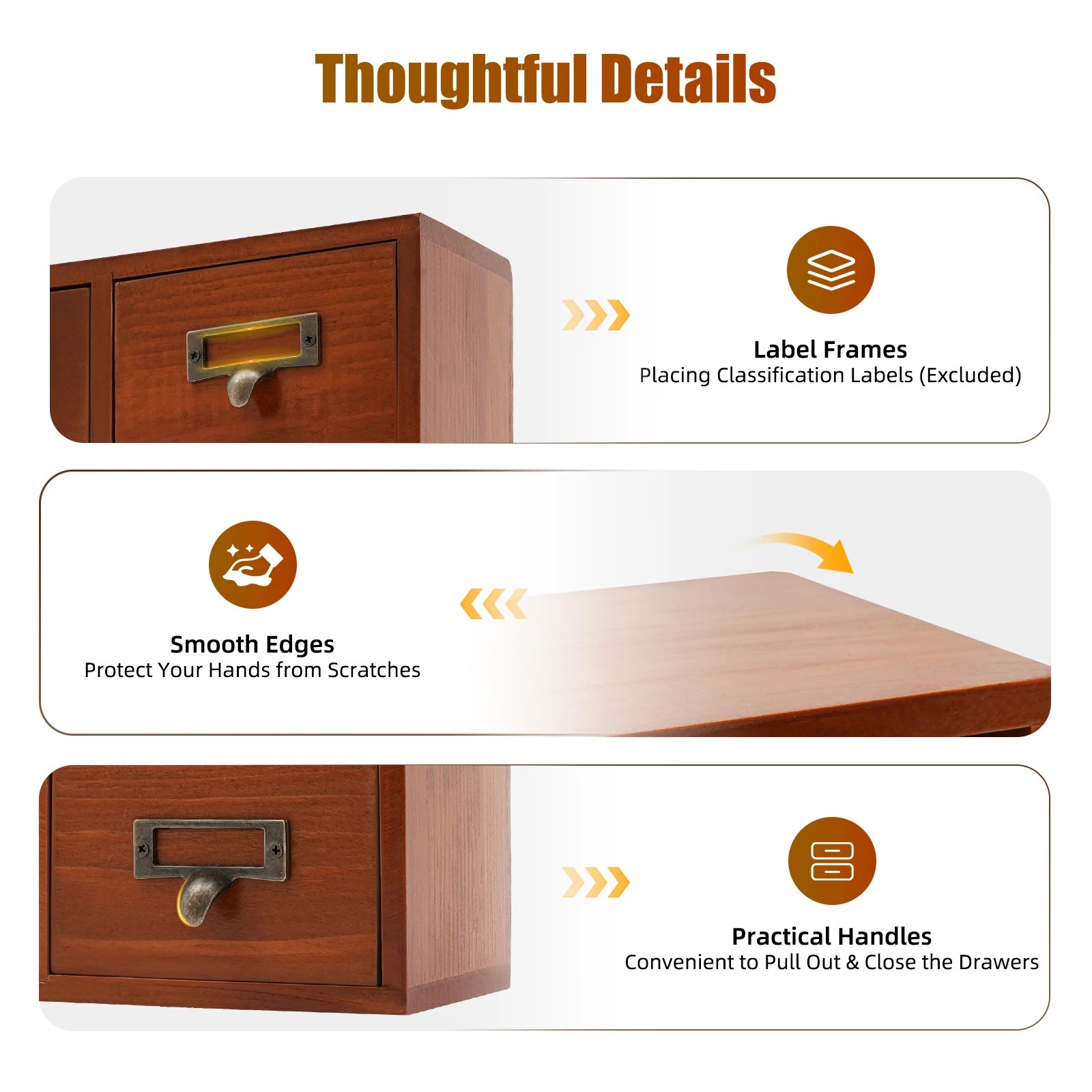 Vintage Aesthetic: The pleasing brown finish, paired with vintage-style label holders, rectangular structure, and sleek lines, lends a distinctive retro charm. It adds a touch of classical beauty and decorative flair to your living space, blending old-world charm with modern home decor.