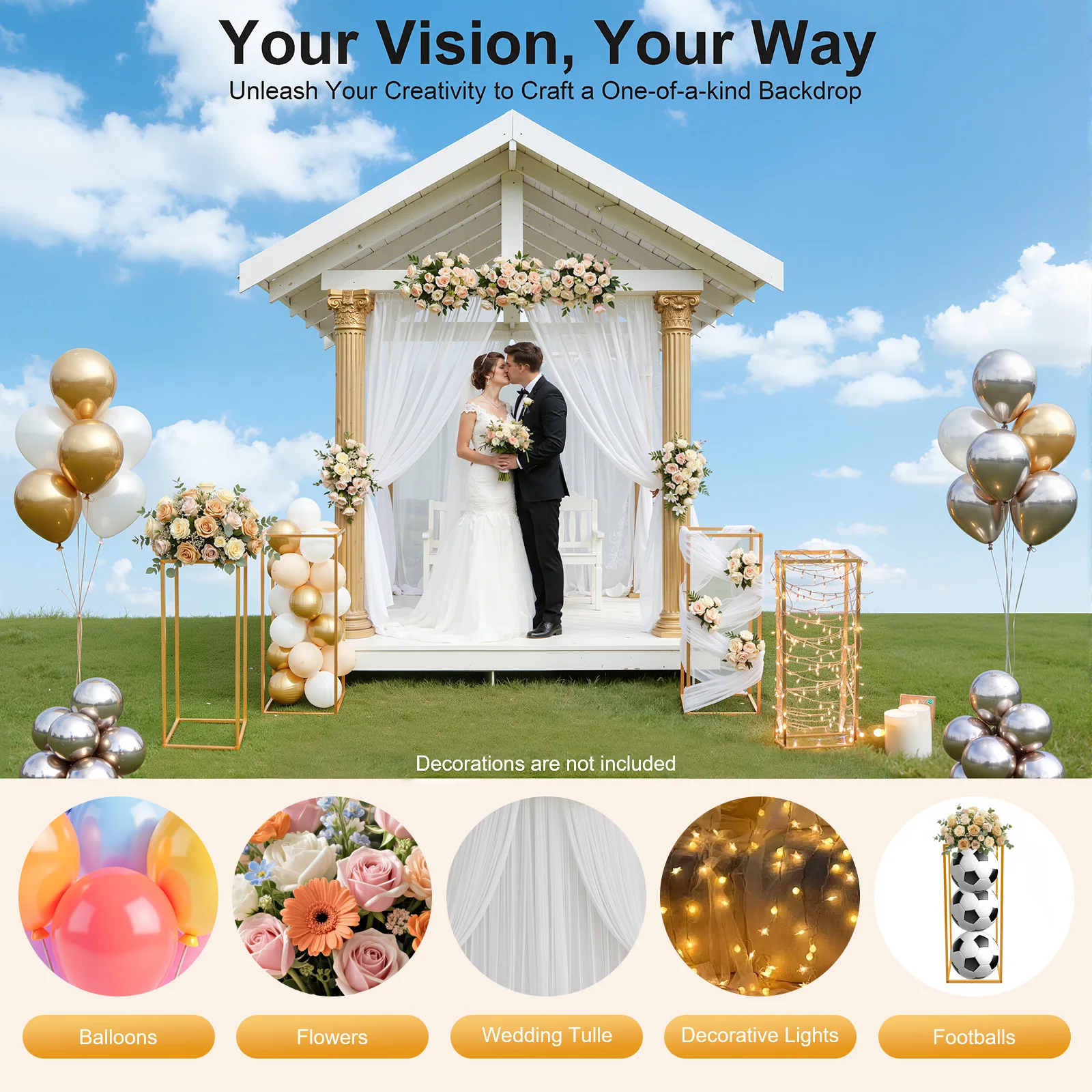 1.Please note that this product does not include flowers, balloons, or vines.