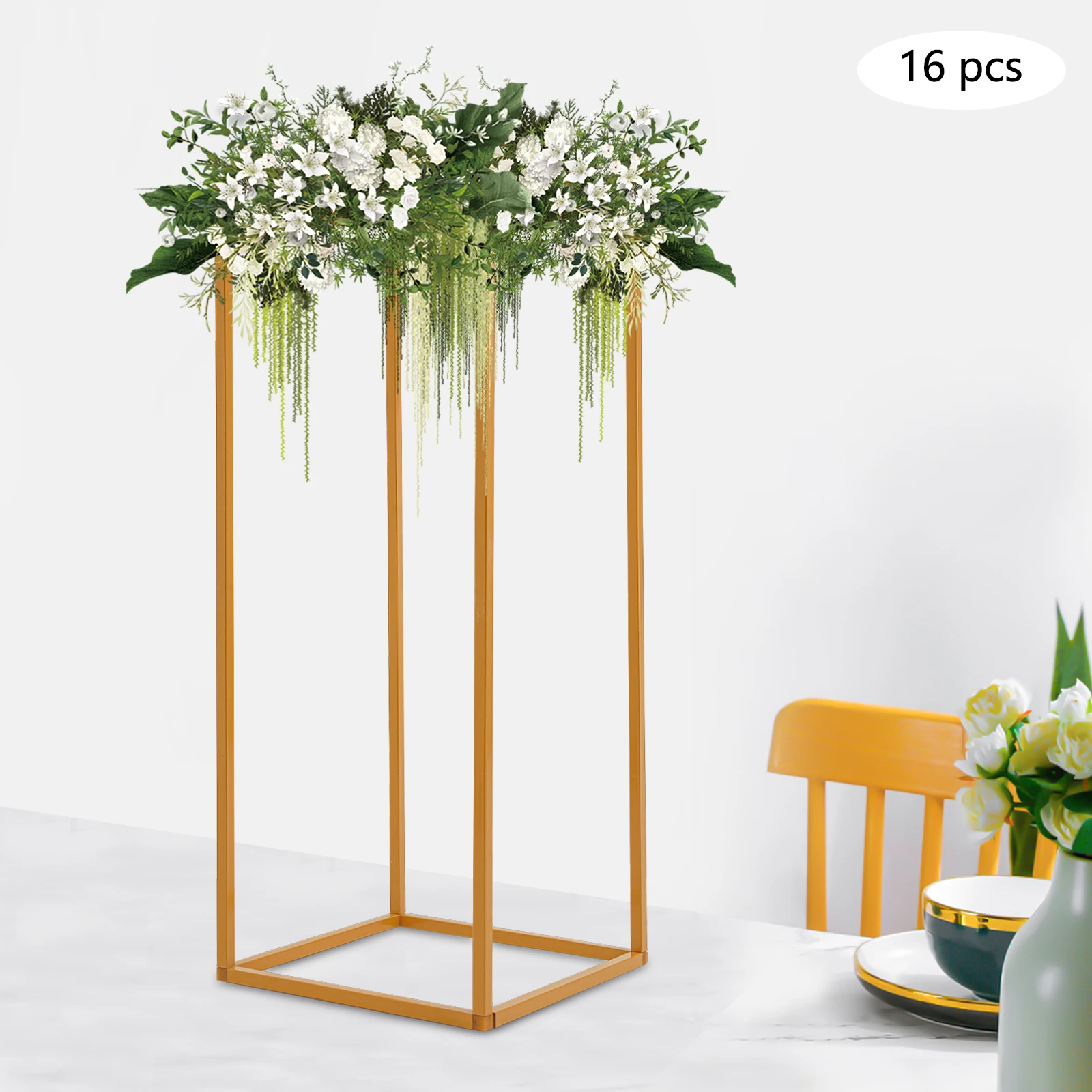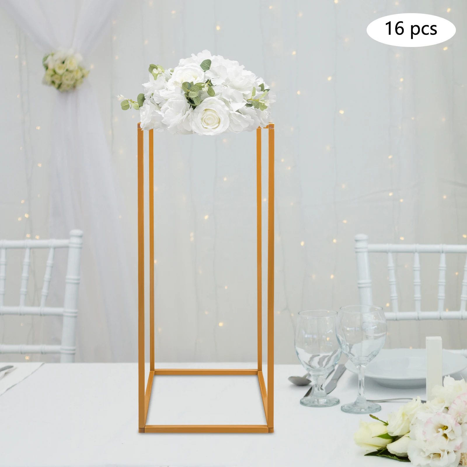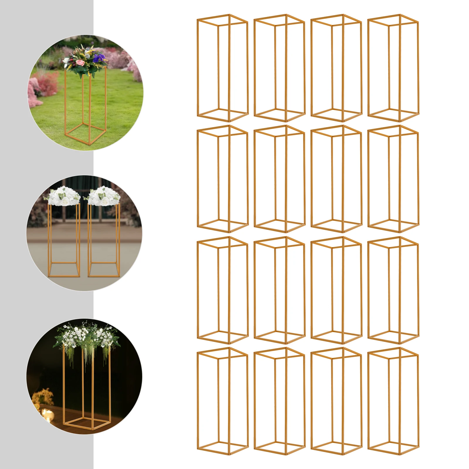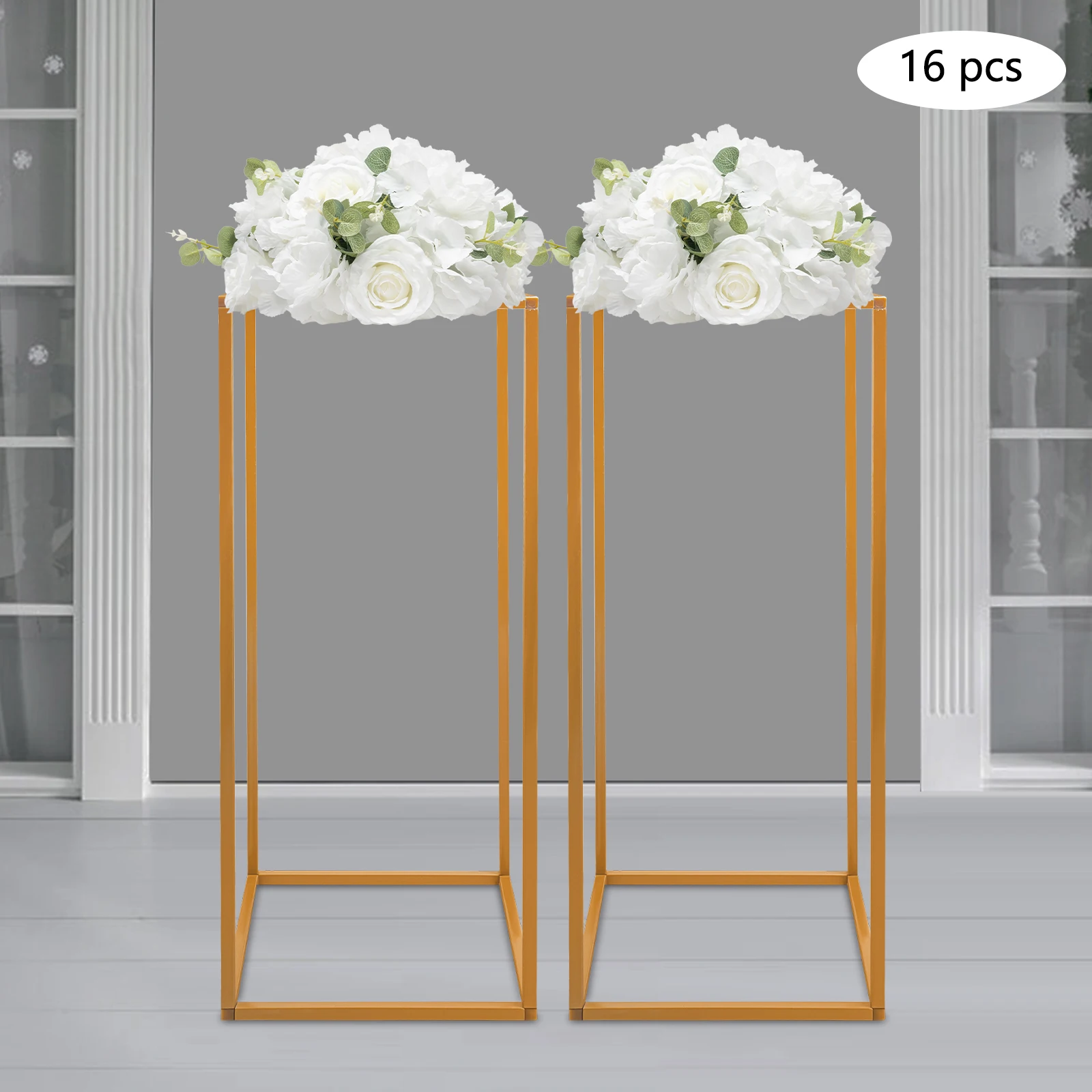 16Pcs Gold Metal Flower Stand Holder DIY Wedding Centerpiece Party Table for Baby Shower Graduation Birthday Arched Display