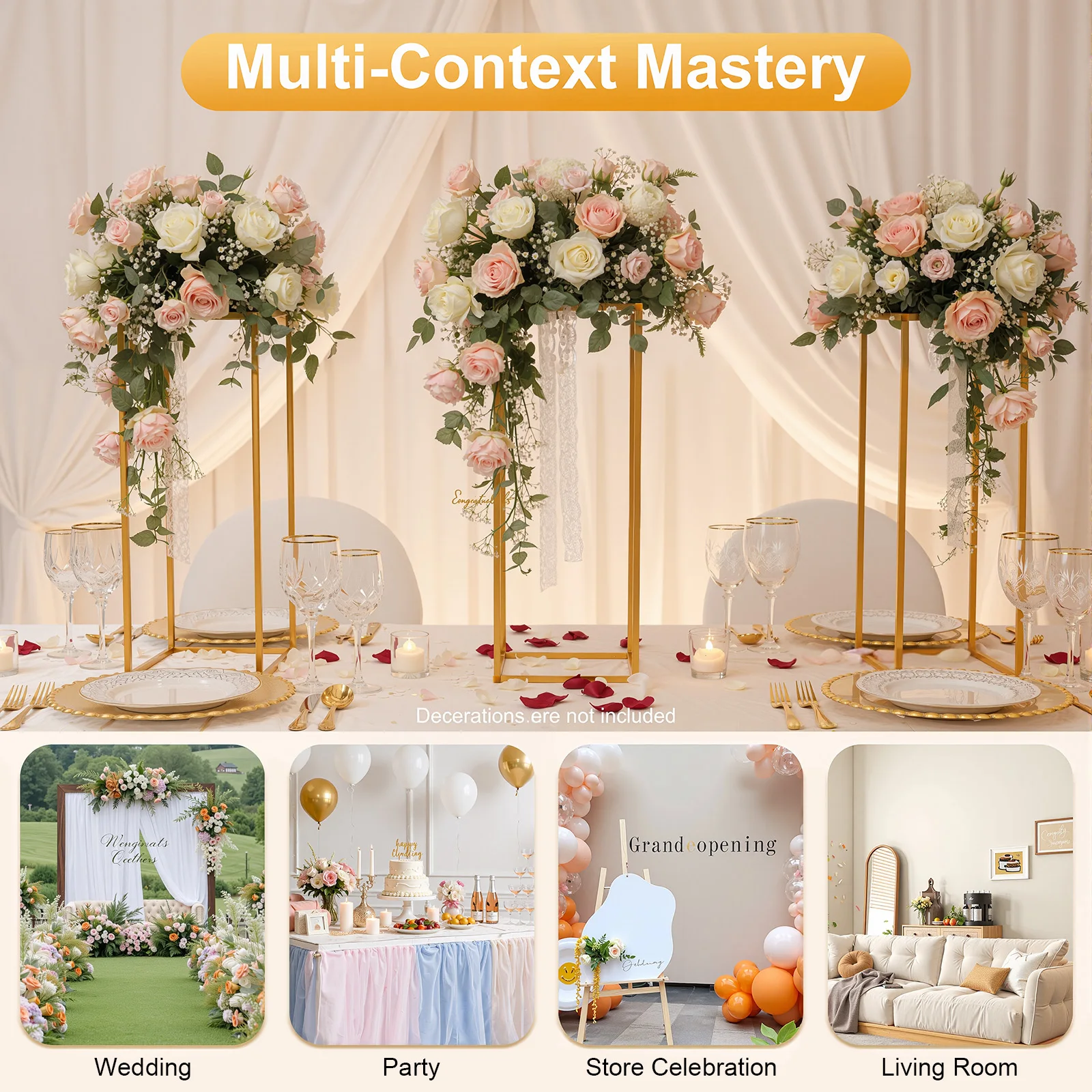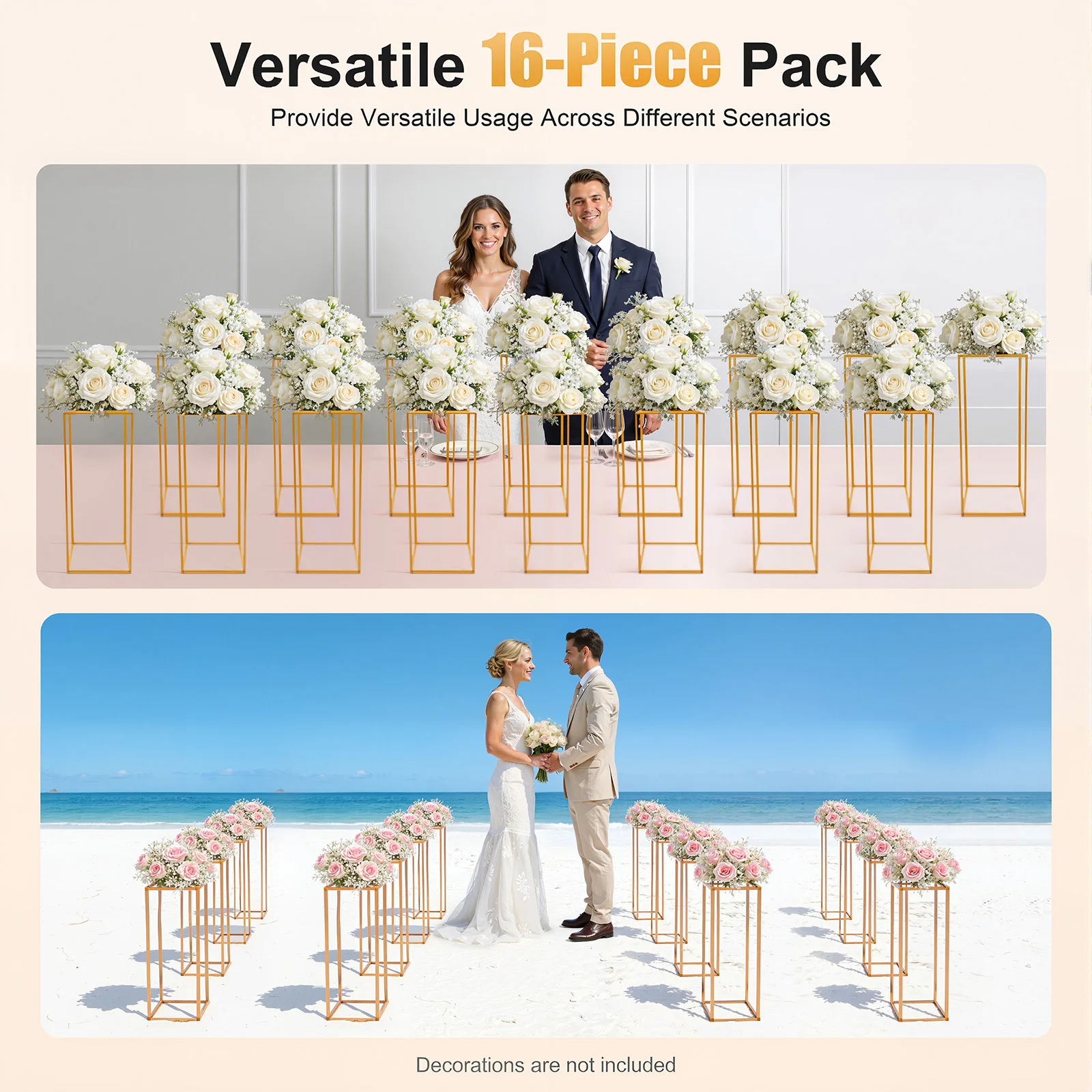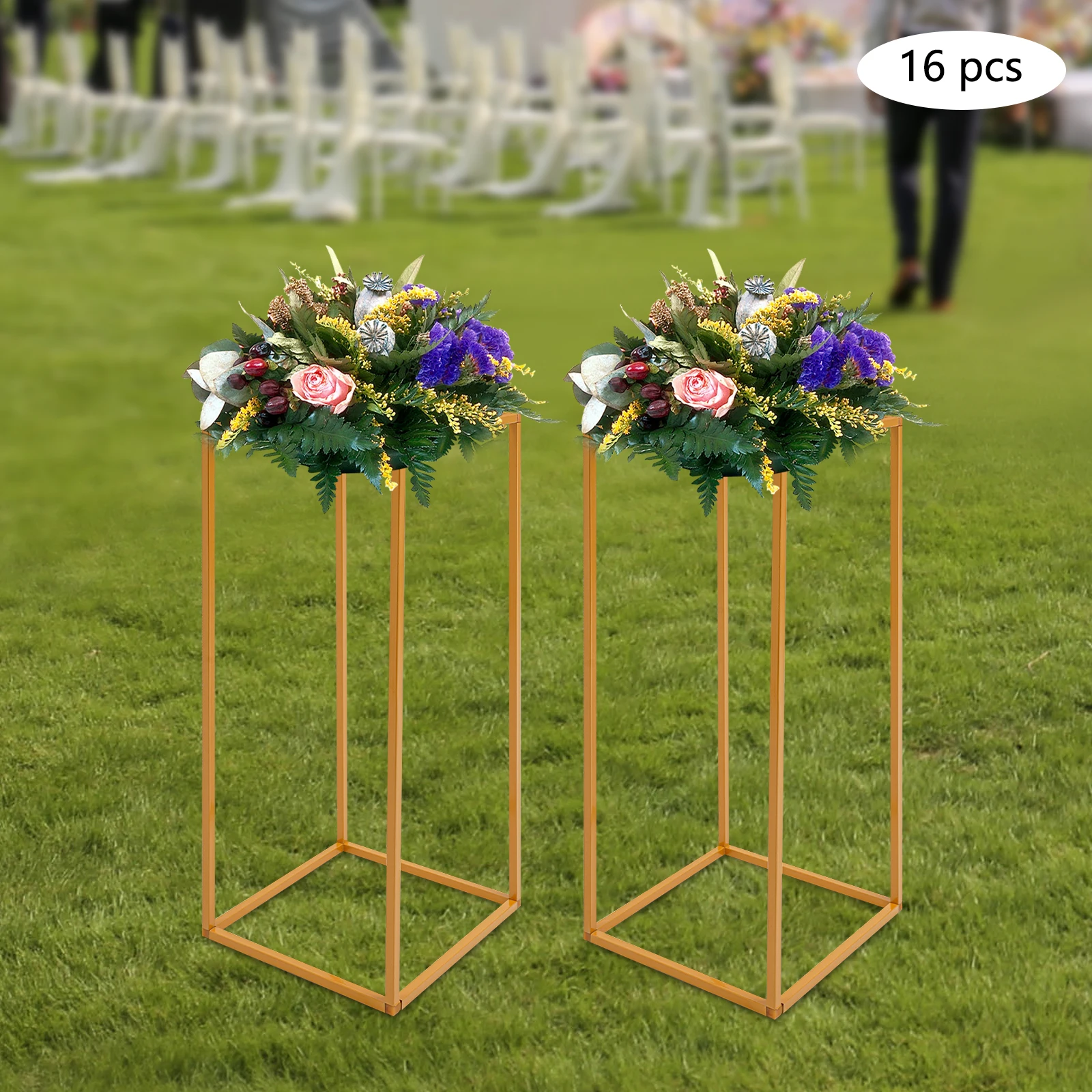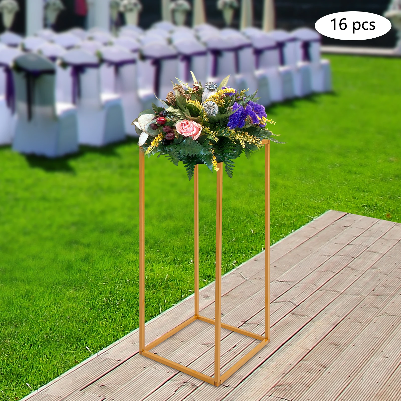 16Pcs Gold Metal Flower Stand Holder DIY Wedding Centerpiece Party Table for Baby Shower Graduation Birthday Arched Display