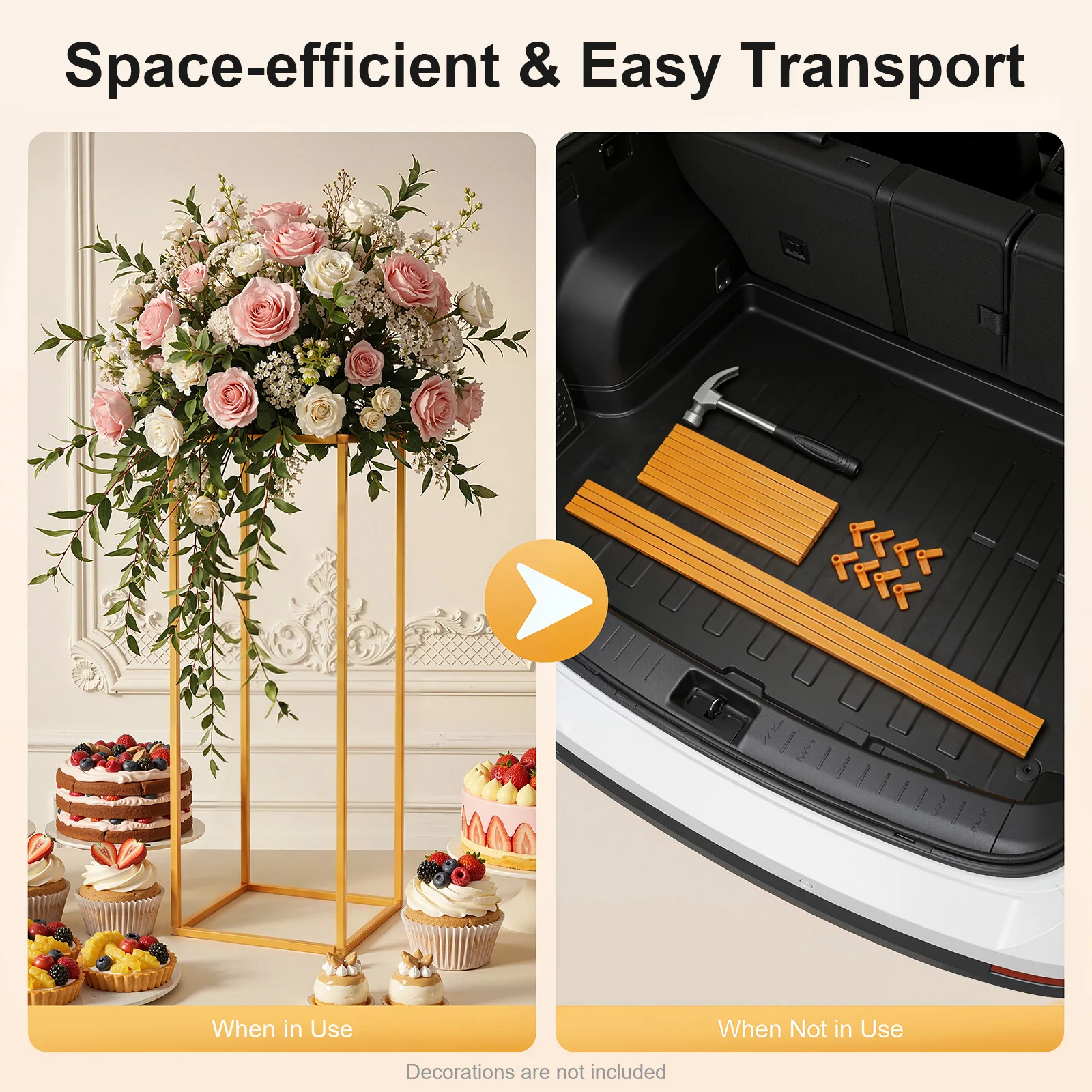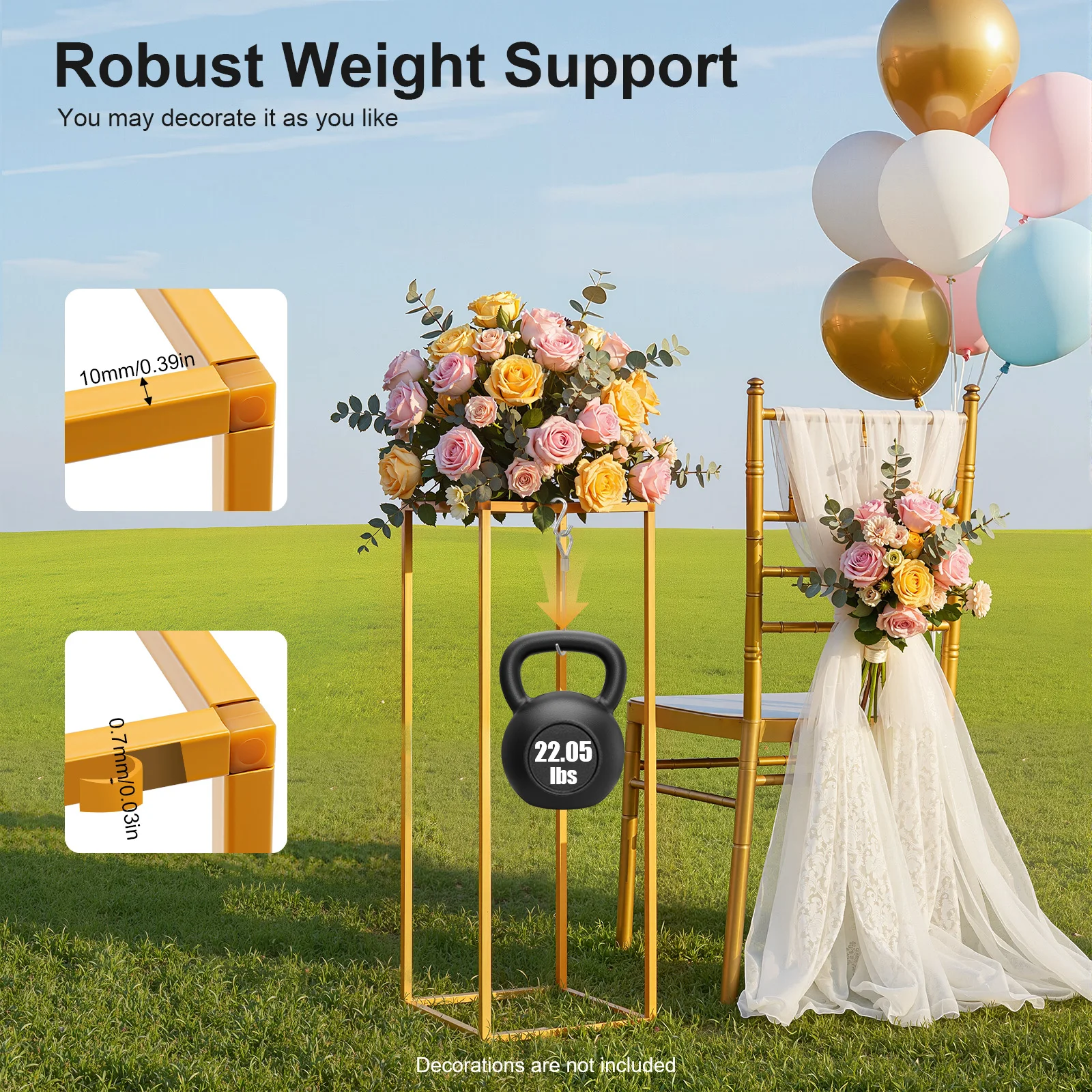 DIY Fun: You can place flowers, balloons, vines(all are not included), etc. at the top to make them exquisite decorations for the party and witness your beautiful memories.