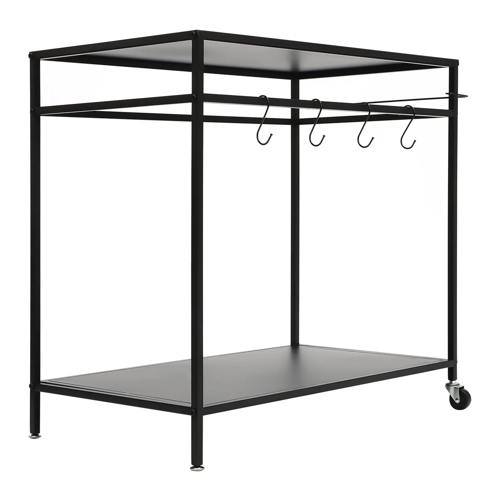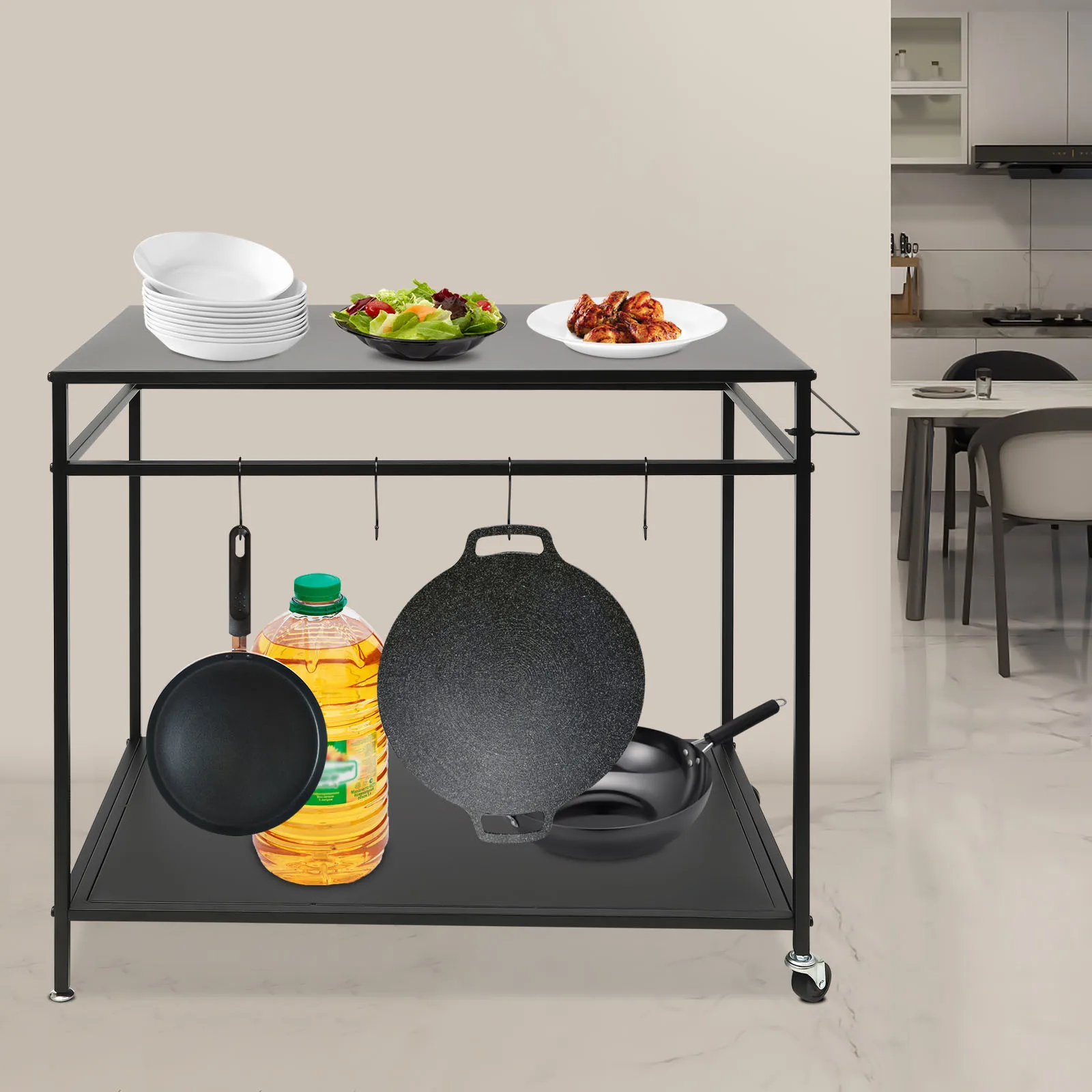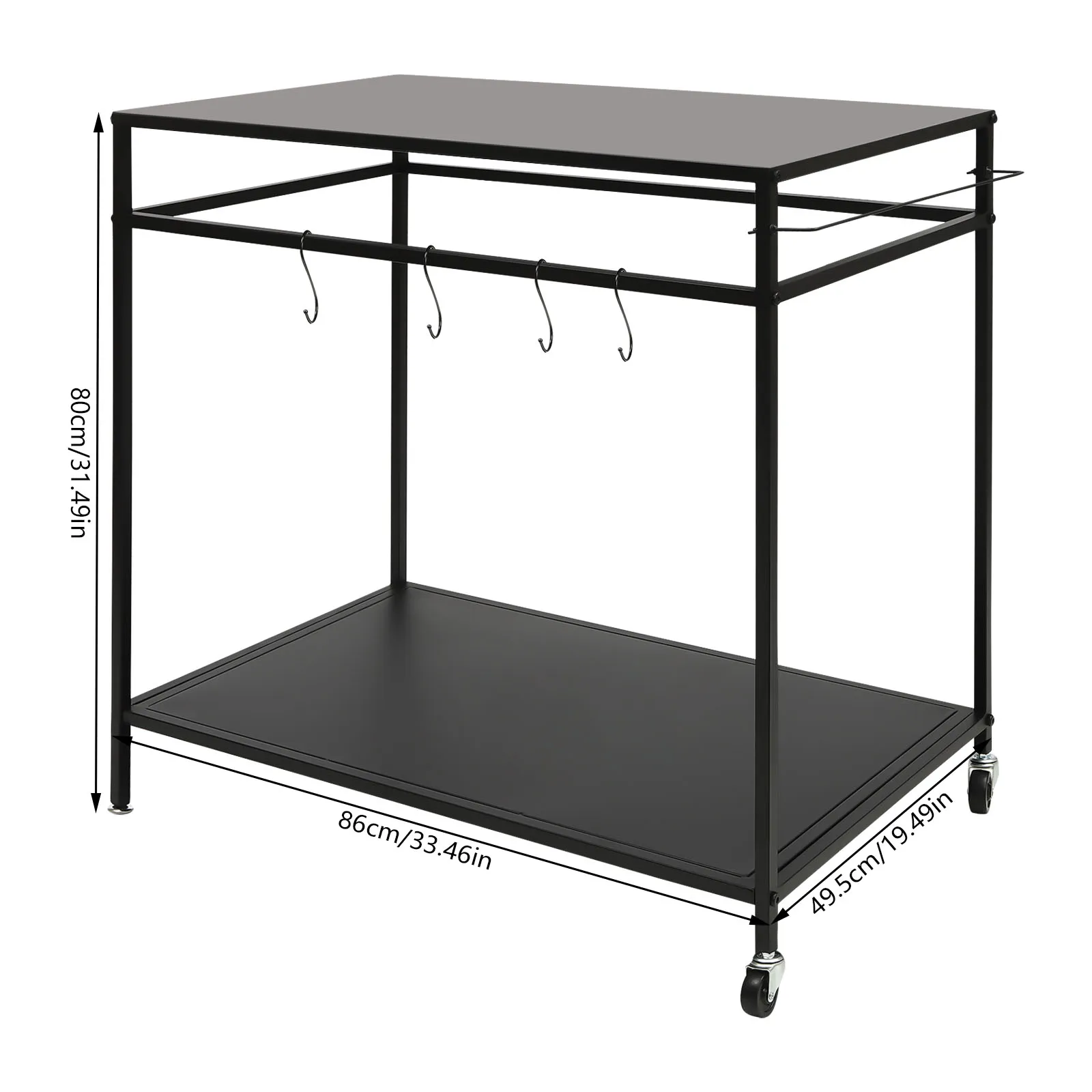 ✔Ample Storage Space: Double-shelf design(each tier of 33.46"L×19.49" W in size) provides ample serving&storage area for your outdoor cooking needs. Additionally, the 4 hooks allow for hanging kitchen utensils like griddle scraper tools, spatula, grill tongs, etc, and the side rack&crossbars improve neatness.