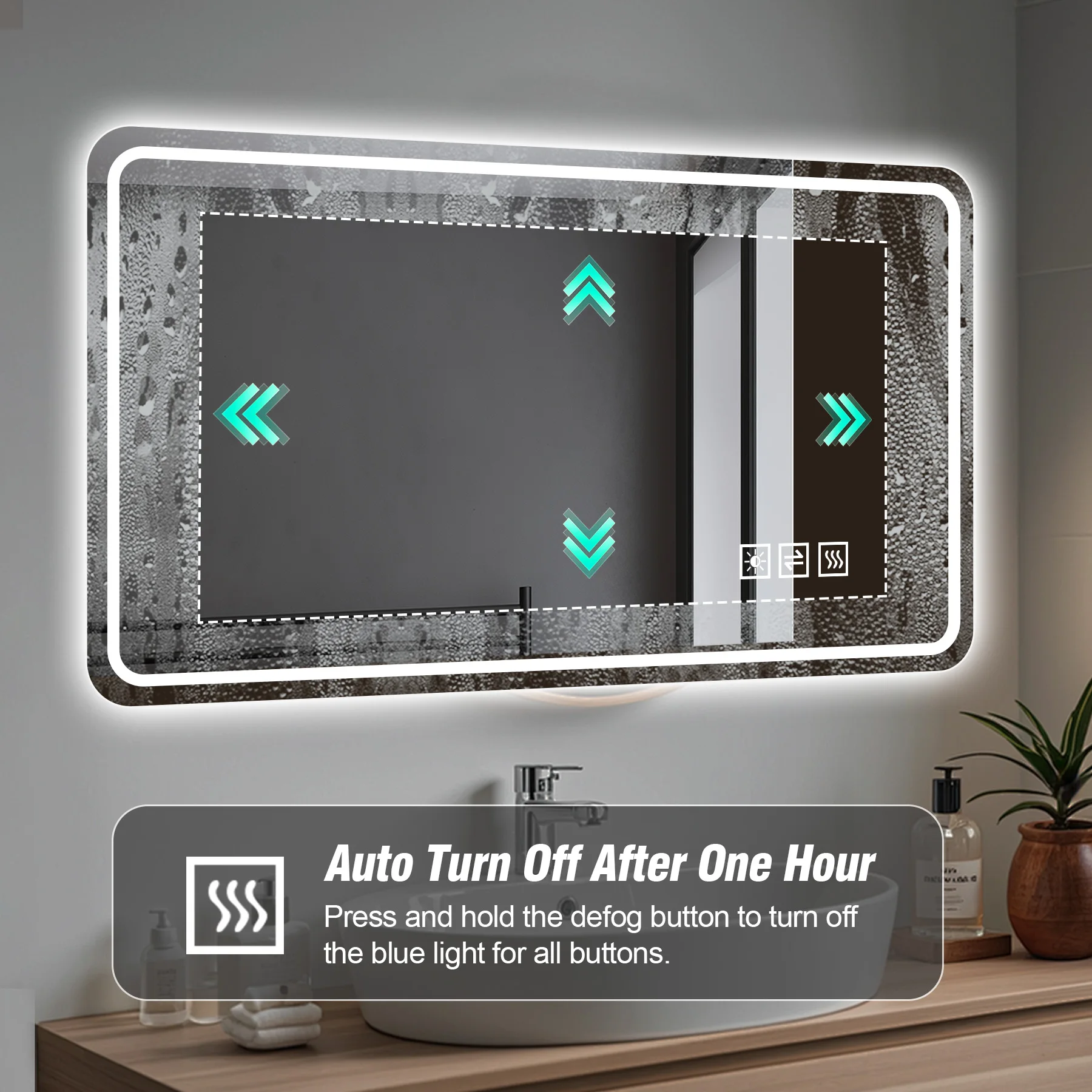 Step out of the shower to a perfectly clear mirror. The rapid defogging system activates with your light touch, banishing steam in moments and auto-shutting off for convenience, so you can always see your reflection without delay.