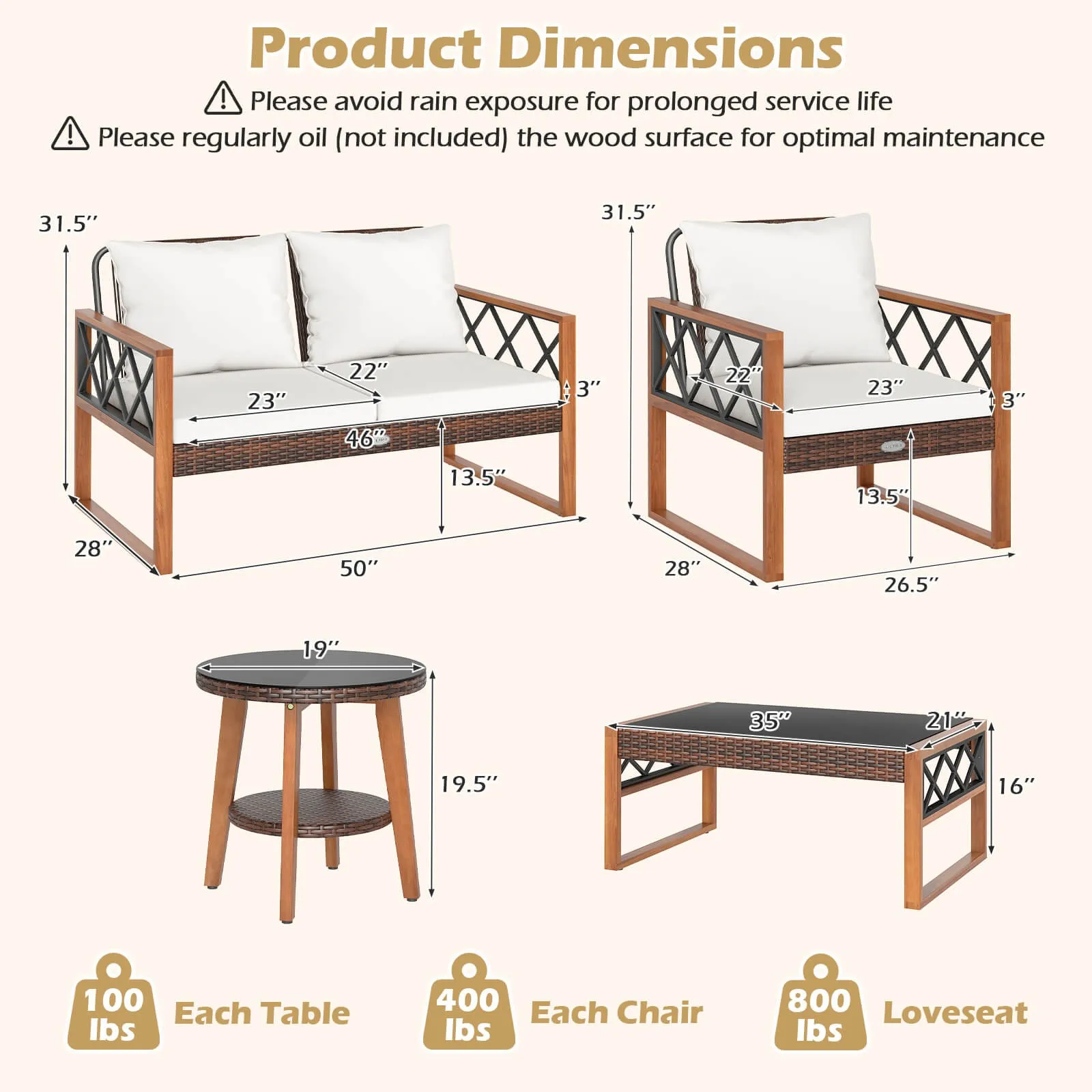 Be the first to review “5 PCS PE Wicker Patio Furniture Set w/Acacia Wood Frame Cushions for Deck Garden”