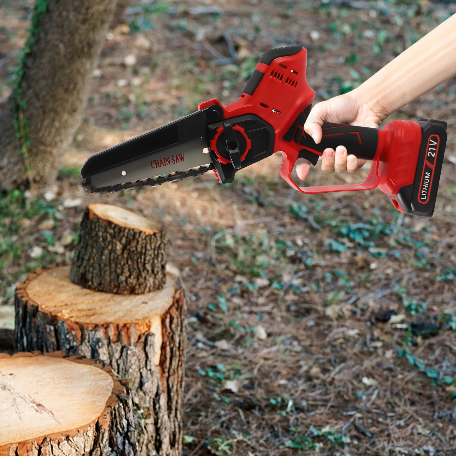 6 Inch Cordless Chainsaw 21V Battery Powered Handheld Electric Chainsaw 800m/min for Cutting Pruning Logging