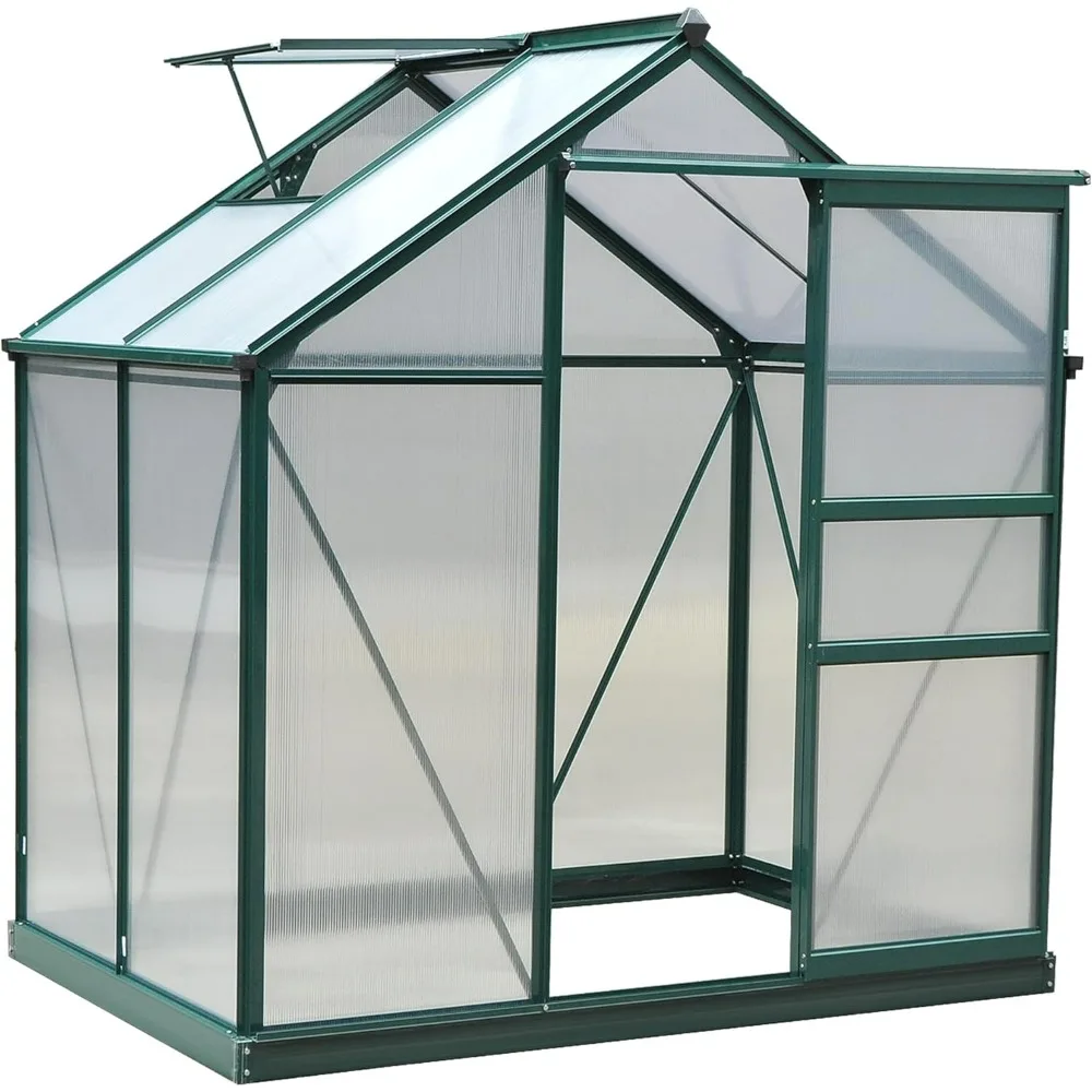 6′ x 4′ Greenhouse for Outdoors, Polycarbonate Greenhouse with Rain Gutter and Roof Vent, Aluminum Walk-in Green Houses