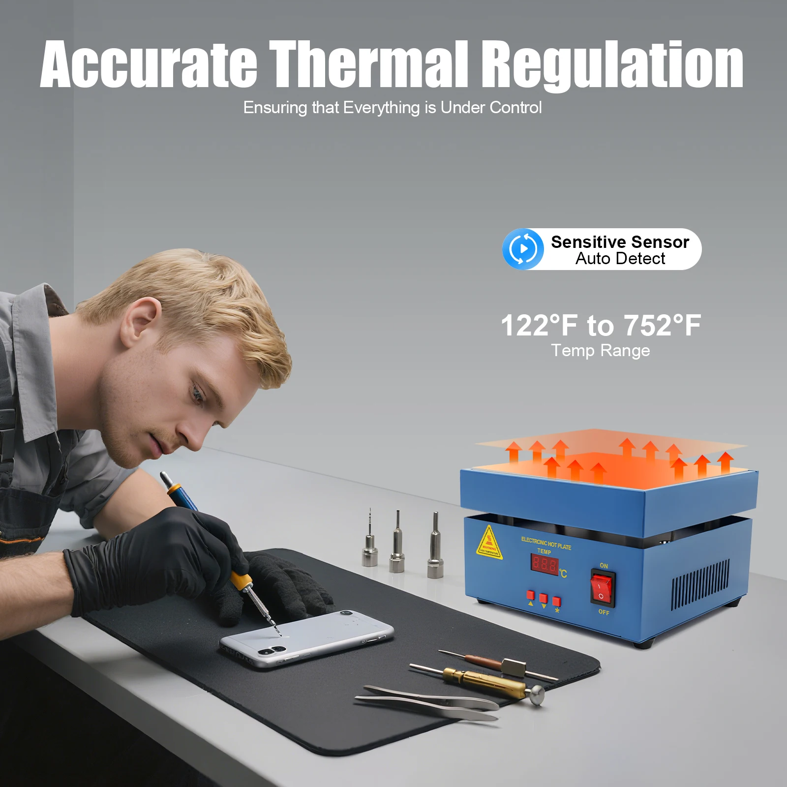 Precise Temperature Control: It has a built-in high-precision sensor with an automatic sensor detection function for more accurate temperature control, and you can adjust the temperature range(122~752°F) as needed to meet your different needs.