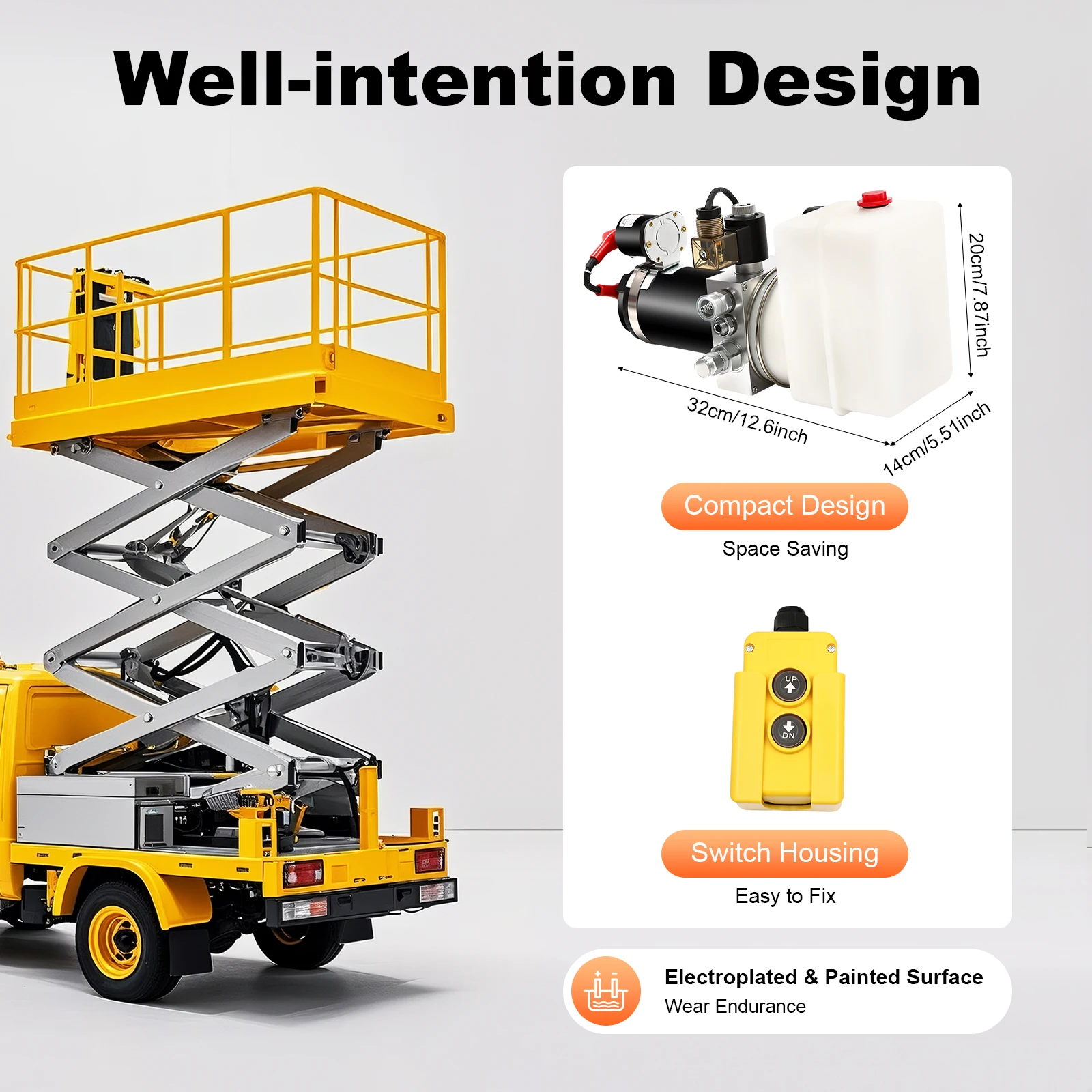 It is a single-acting power unit for power up & gravity down. It is suitable for dump trailers, fixed lifting platforms, sanitation vehicles, car lifting platforms, lifting platforms, car tailboards, fog machines, spreaders, and dump trucks.