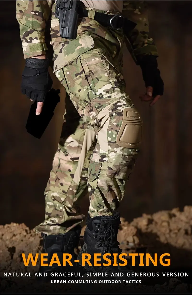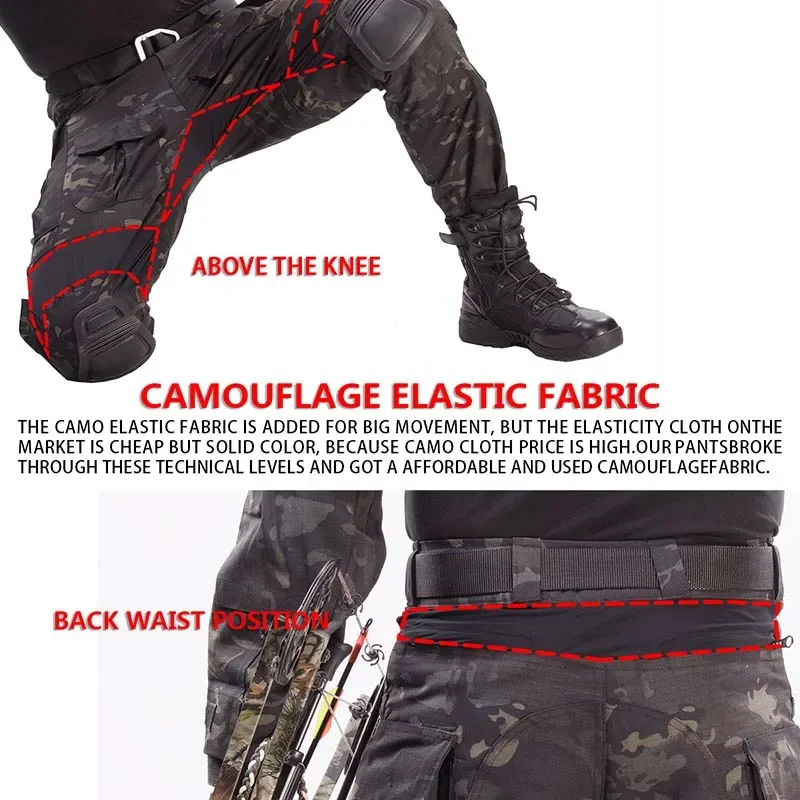 GEN3 Men Paintball Combat Cargo Pants+Knee Pads Camo Airsoft Trousers Elasticity Training Tactical Pant Hunting Clothes Climbing