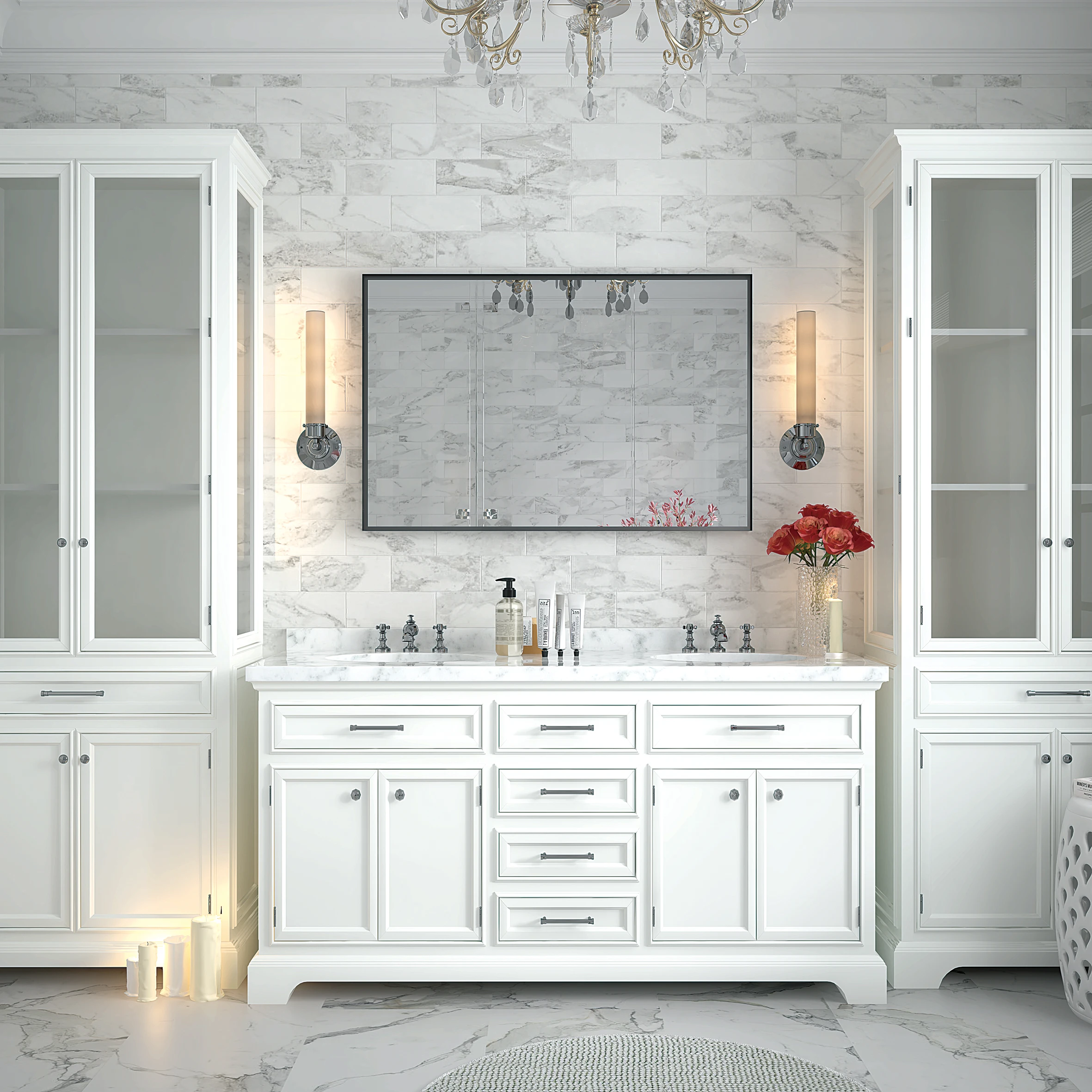 • [Clear reflection and no distortion] : Wall-mounted bathroom mirror adopts HD float glass design to ensure 1:1 reproduction of the real image, providing clear reflection without distortion.
