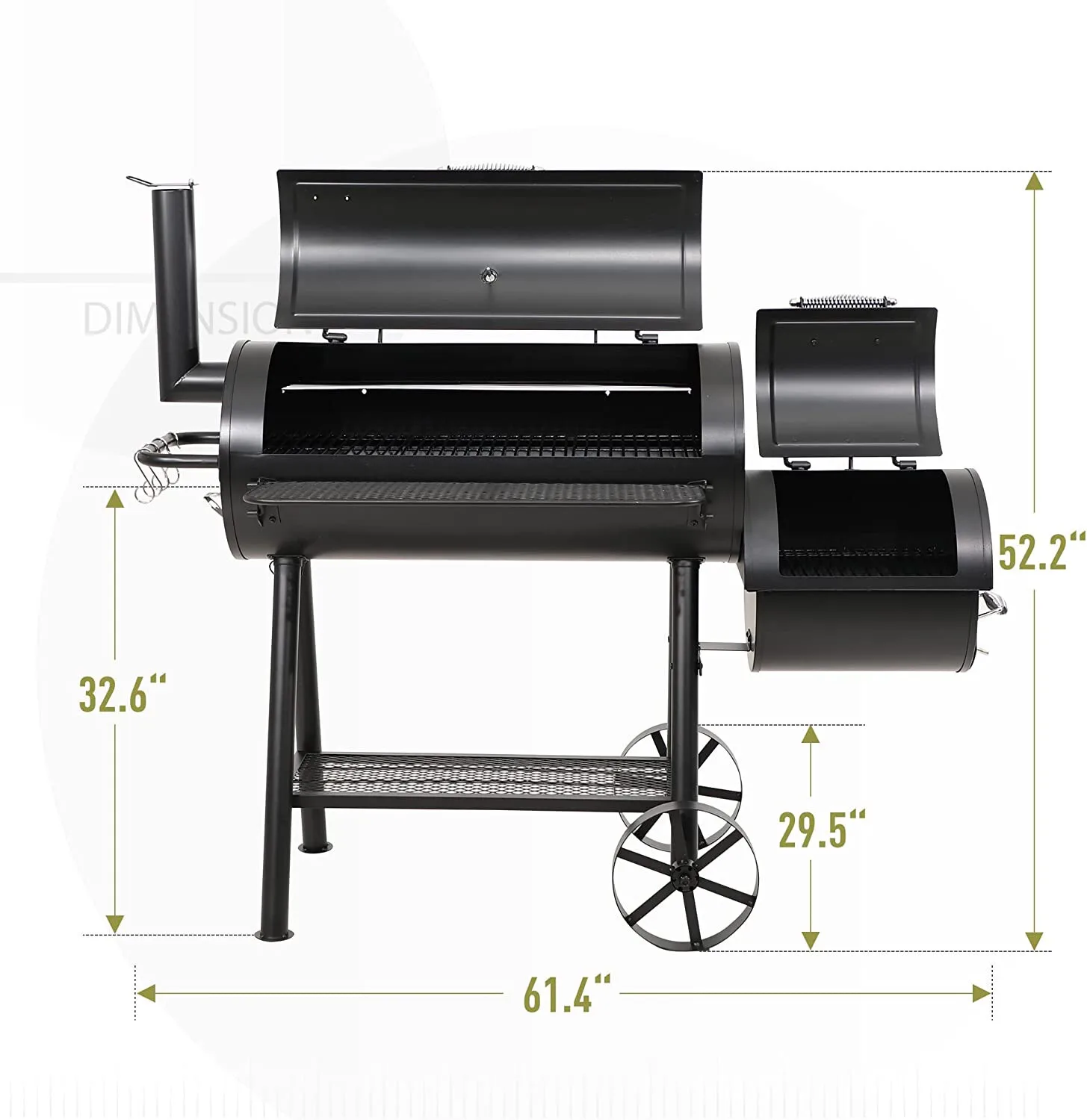Offset Smoker Grill Charcoal Outdoor Cooking Barbecue BBQ 941 sq.in Extra Large