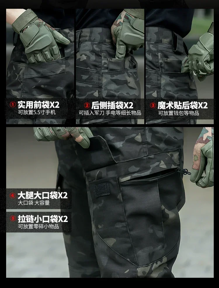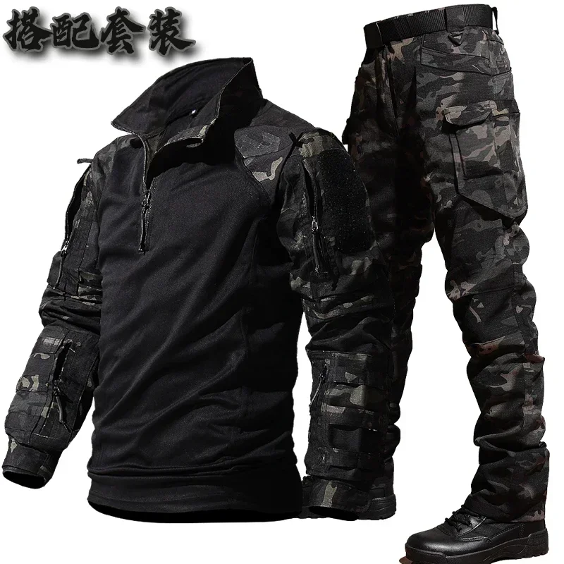 Outdoor Suit Men Outdoor Durable Breathable T-shirt Pants Mens Army Sets Training Hunting Suits Multiple Pockets Camo 2 Pcs