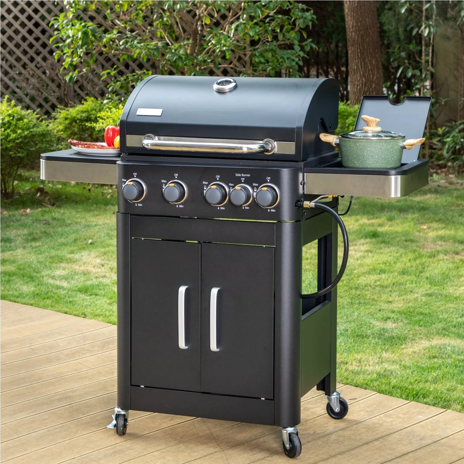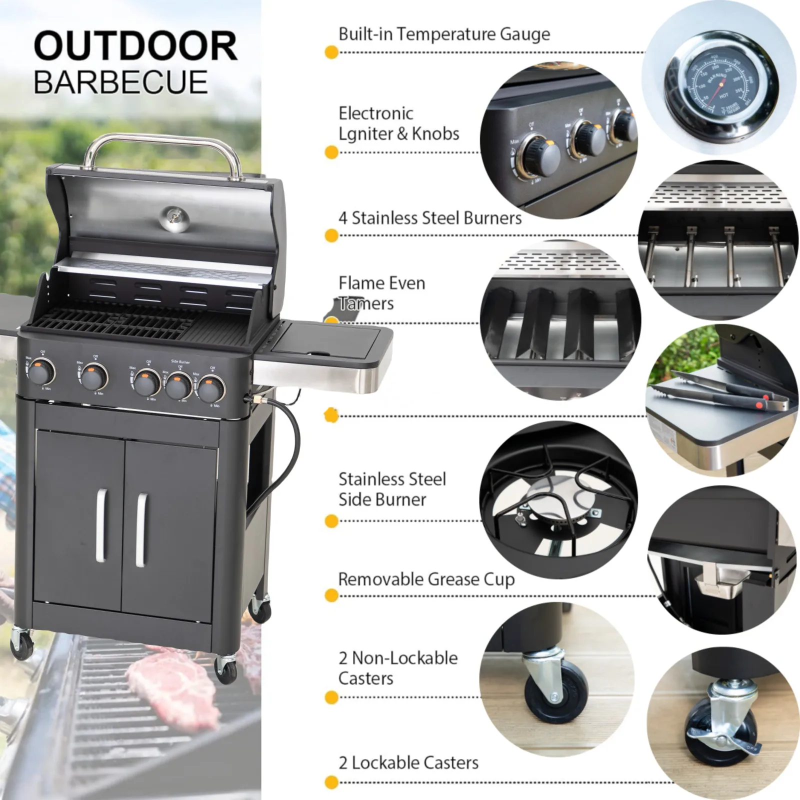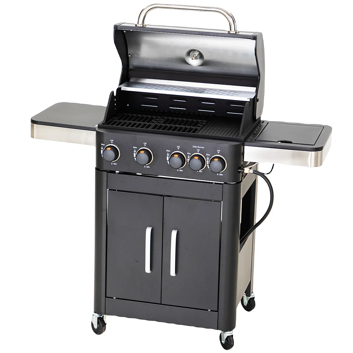 Propane Gas Grill 5 Burners with Side Burner Grill Cart Outdoor Cooking BBQ