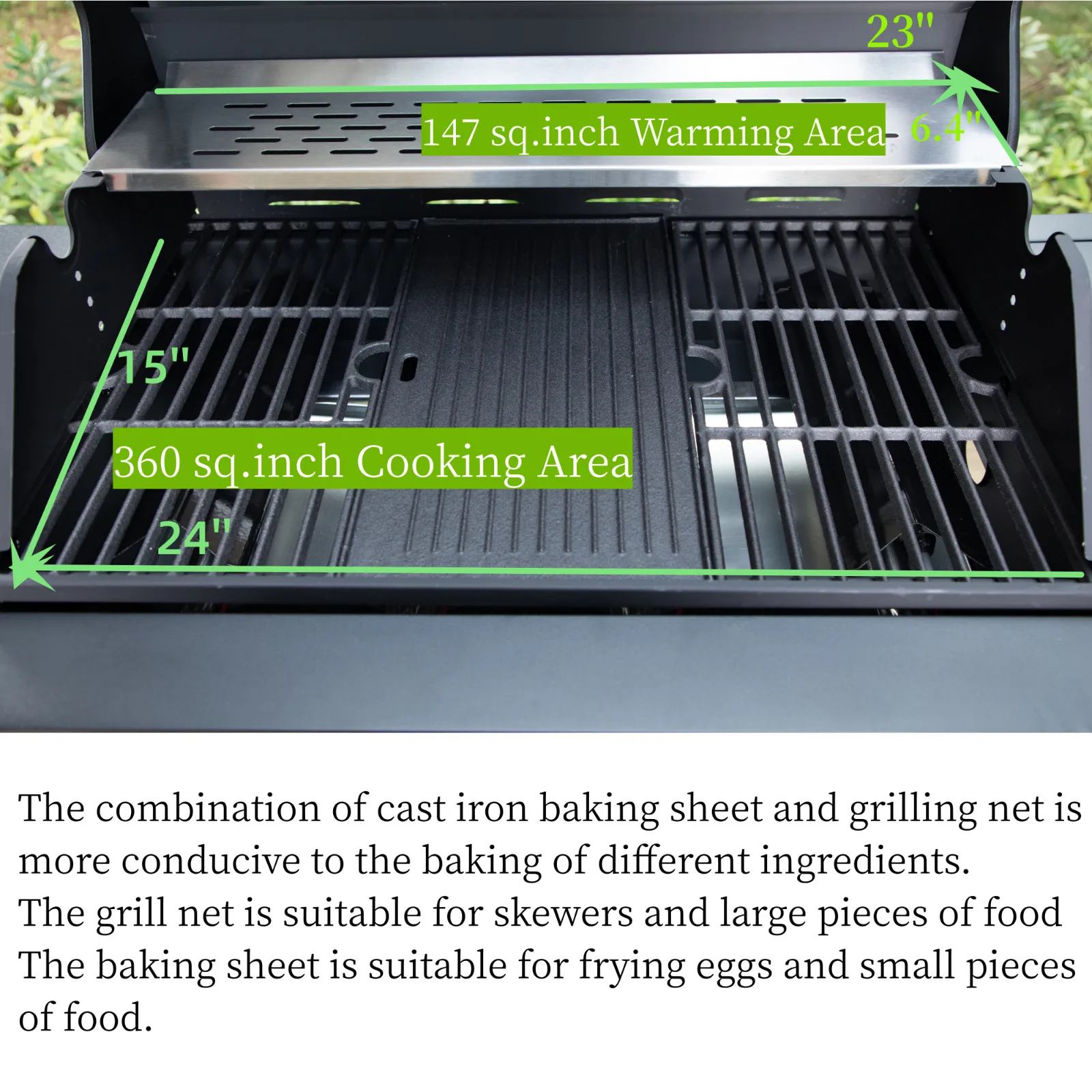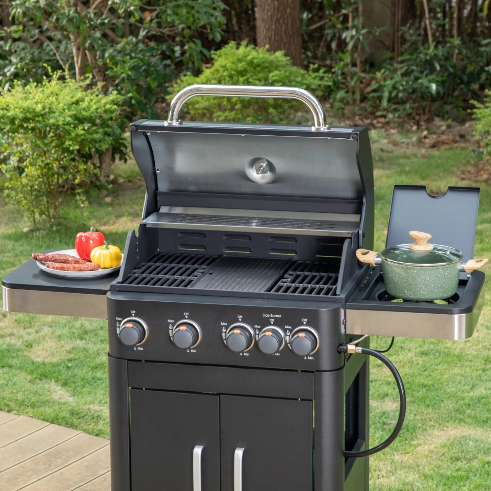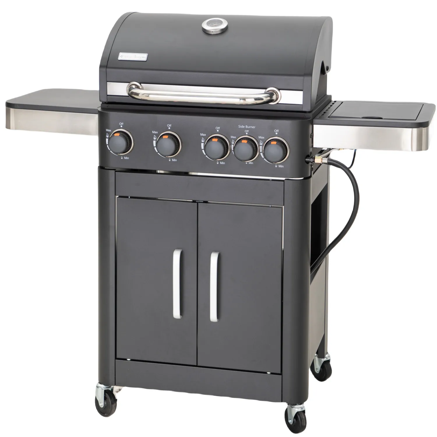 Propane Gas Grill 5 Burners with Side Burner Grill Cart Outdoor Cooking BBQ