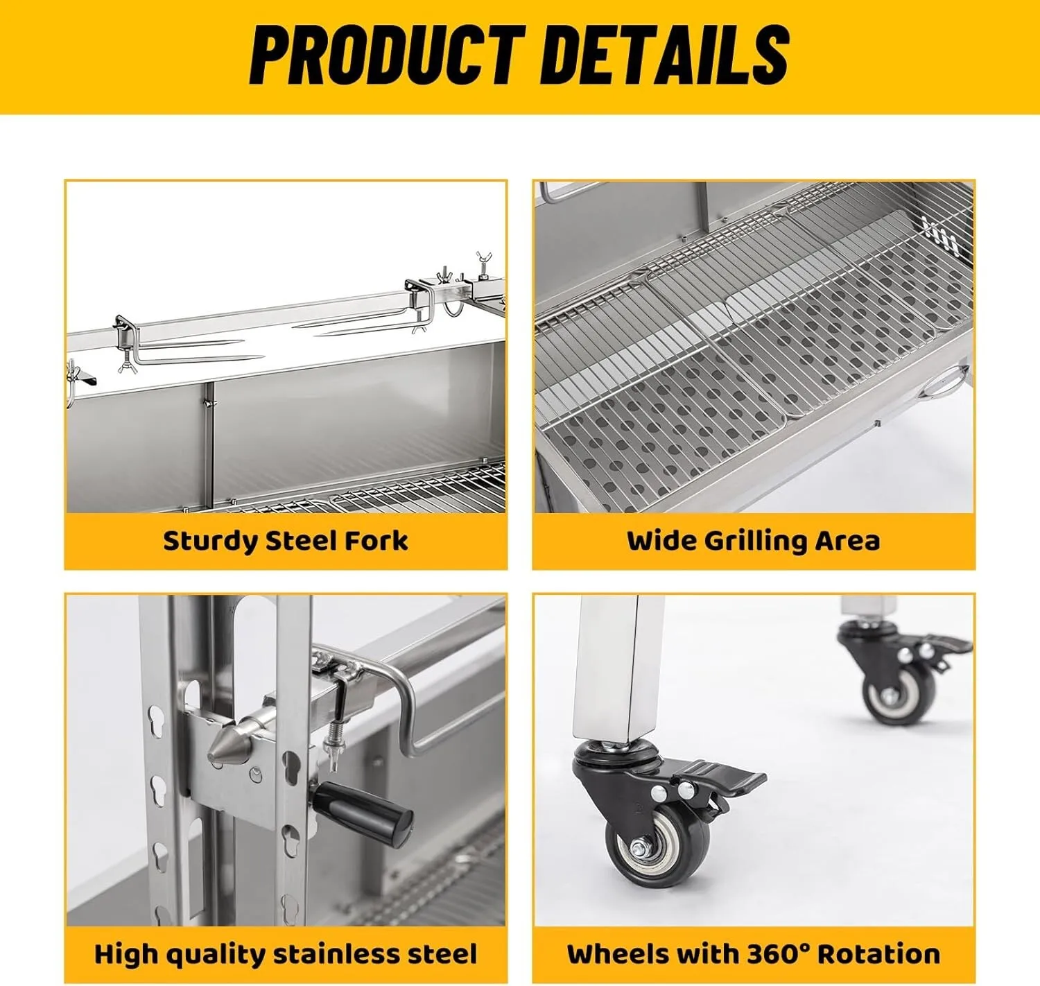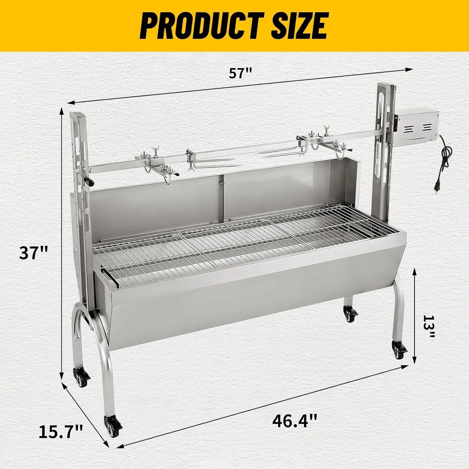 Rotisserie Grill Roaster 176lbs Charcoal Grill Outdoor BBQ Pig Lamb Spit Roaster