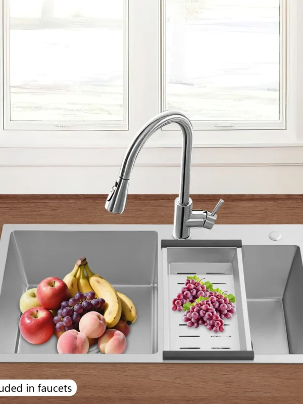 Stainless Steel Double Kitchen Sink Anti-Condensation Soundproof Pads with Drain Basket 78*43*21cm for Home Bar Restaurant