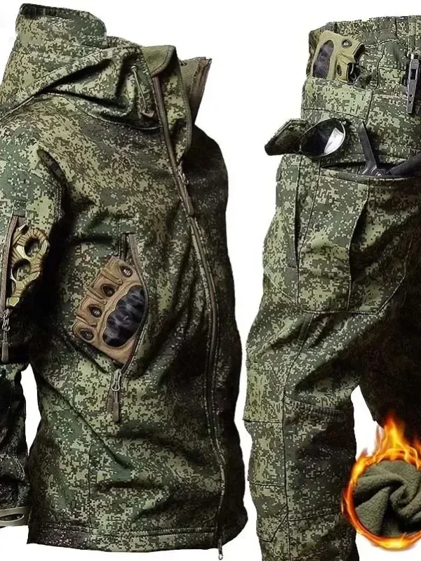Tactical Winter Set Men's Outdoor Hiking Windproof Waterproof Suit Multi-Pocket Soft Shell Hooded Jackets Sharkskin Work Pants