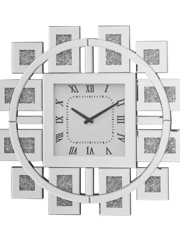 Stylish Mirrored Wall Clock Inlaid Faux Gemstones Modern Decor Clock for Home Living Room Bedroom Office Wall Decor