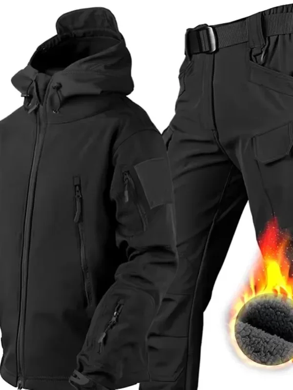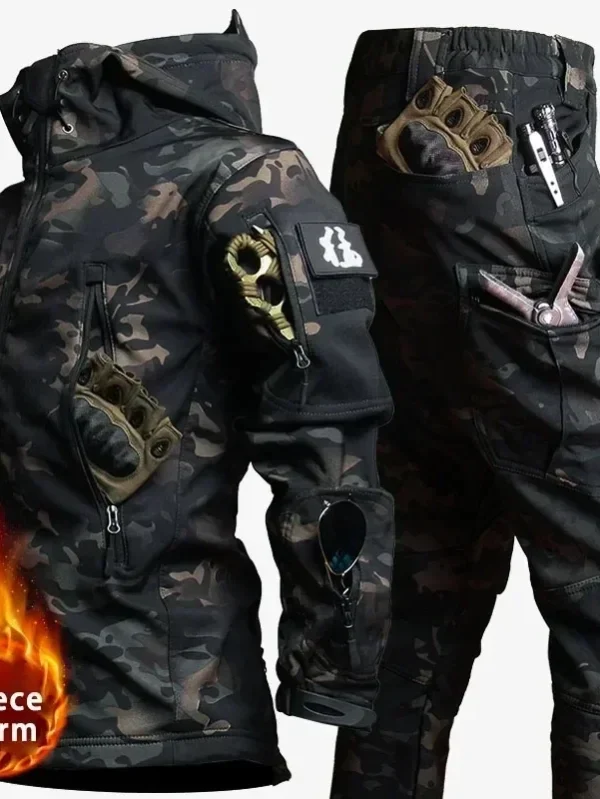 Winter Men Fleece Tactical Jacket Waterproof Suits Outdoor Cargo Pants Fishing Training Hiking Camping Tracksuits Coat Thermal